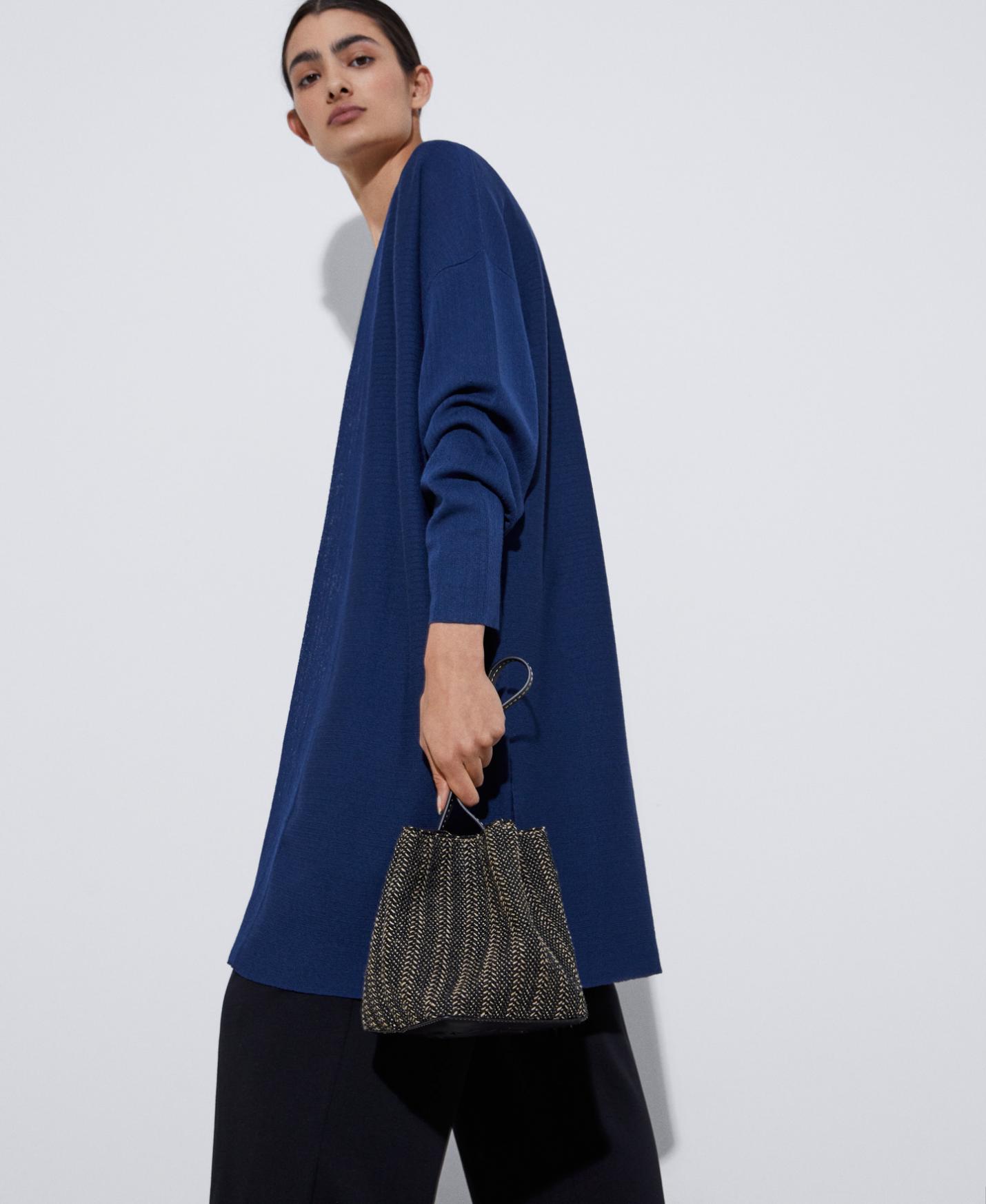 Descripción Ref.212551632121 Bolso pequeño en rafia de poliéster reciclado y yute. Tiene un compartimento transformable en saco o capazo por cierre magnético. Base cuadrada logotipada, con asa corta de mano y larga regulable. Bolsa interior en algodó…