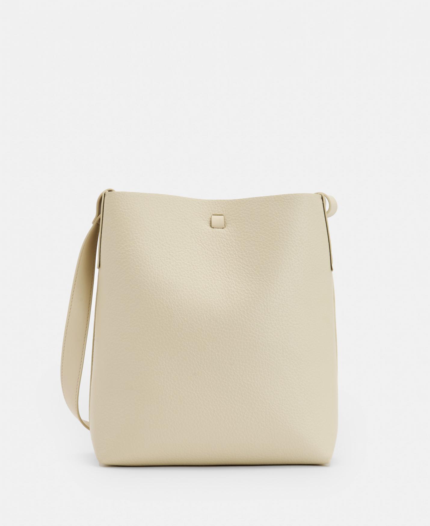 Hobo en poliéster y poliuretano reciclados en textura grano. Tiene un compartimento con interior a contraste y sin forro. Cierre estrangulador y asa larga regulable con hebilla en metal reciclado.