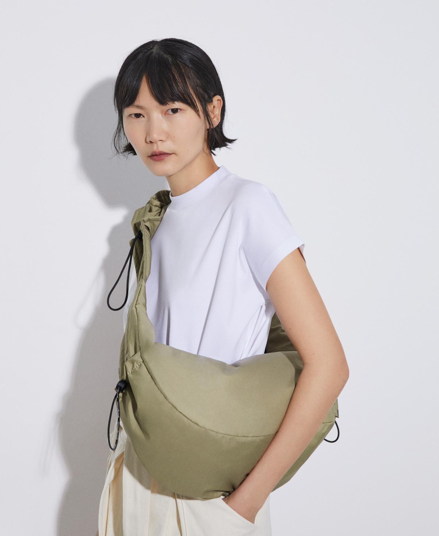 DescripciónRef.212601005221 Hobo en nylon reciclado de tamaño medio. Tiene un compartimento con cierre cremallera y dos bolsillos laterales con cierre de estrangulador. Asa…