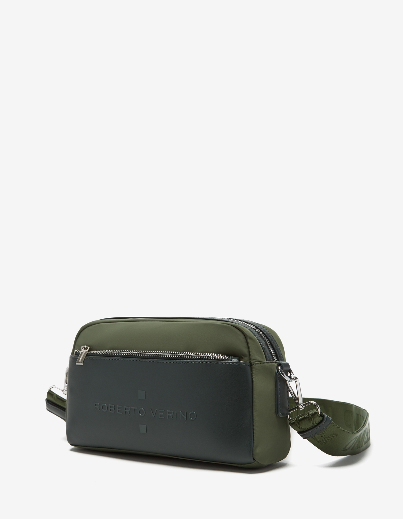 Bolso bandolera fabricado en tejido técnico de nailon en color verde con bolsillo de cremallera en frontal y maxi logo grabado. Asa bandolera regulable y cierre de cremallera con interior c…