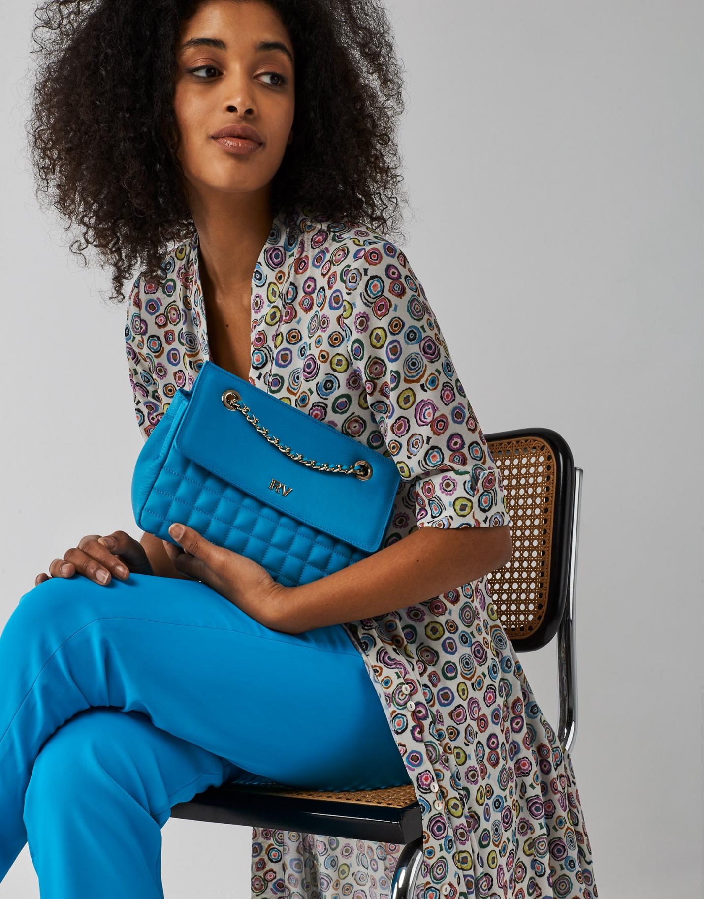Bolsos Roberto Verino | Bolso Shoulder Midi Ghauri Piel Acolchada Azul Turquesa Mujer