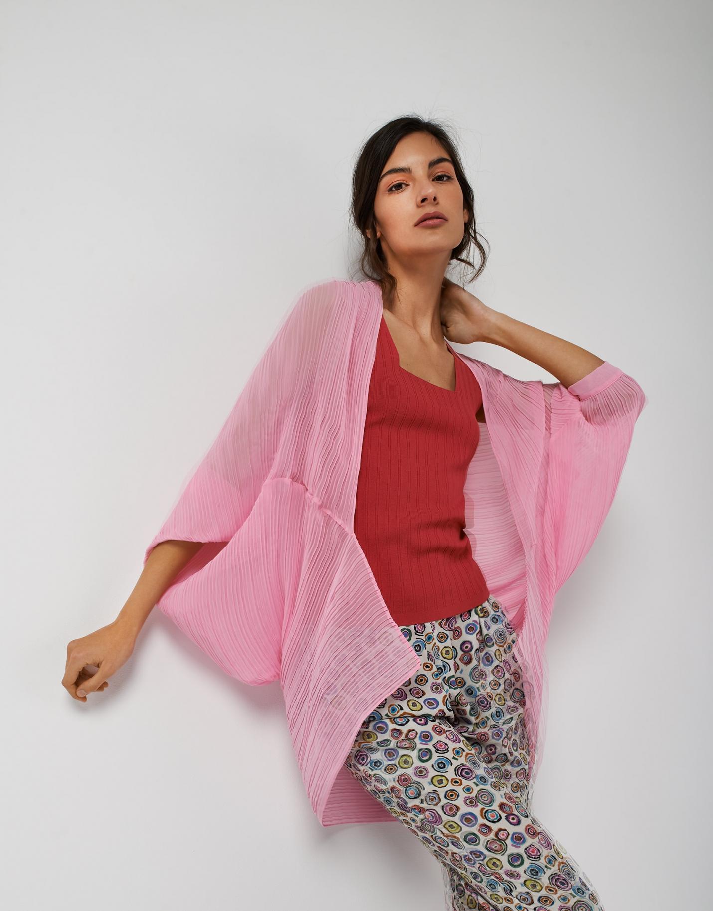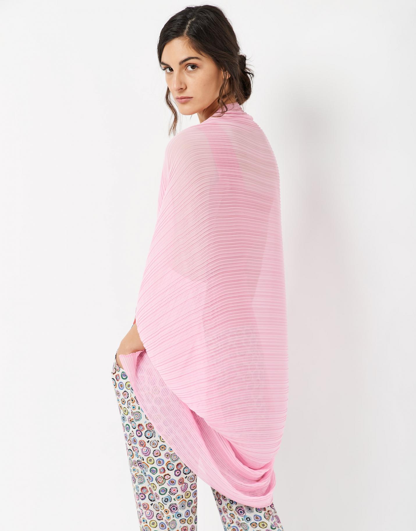 Chal con mangas confeccionado en tejido plisado color rosa. Corte más largo por la espalda y manga con puño en el bajo. …