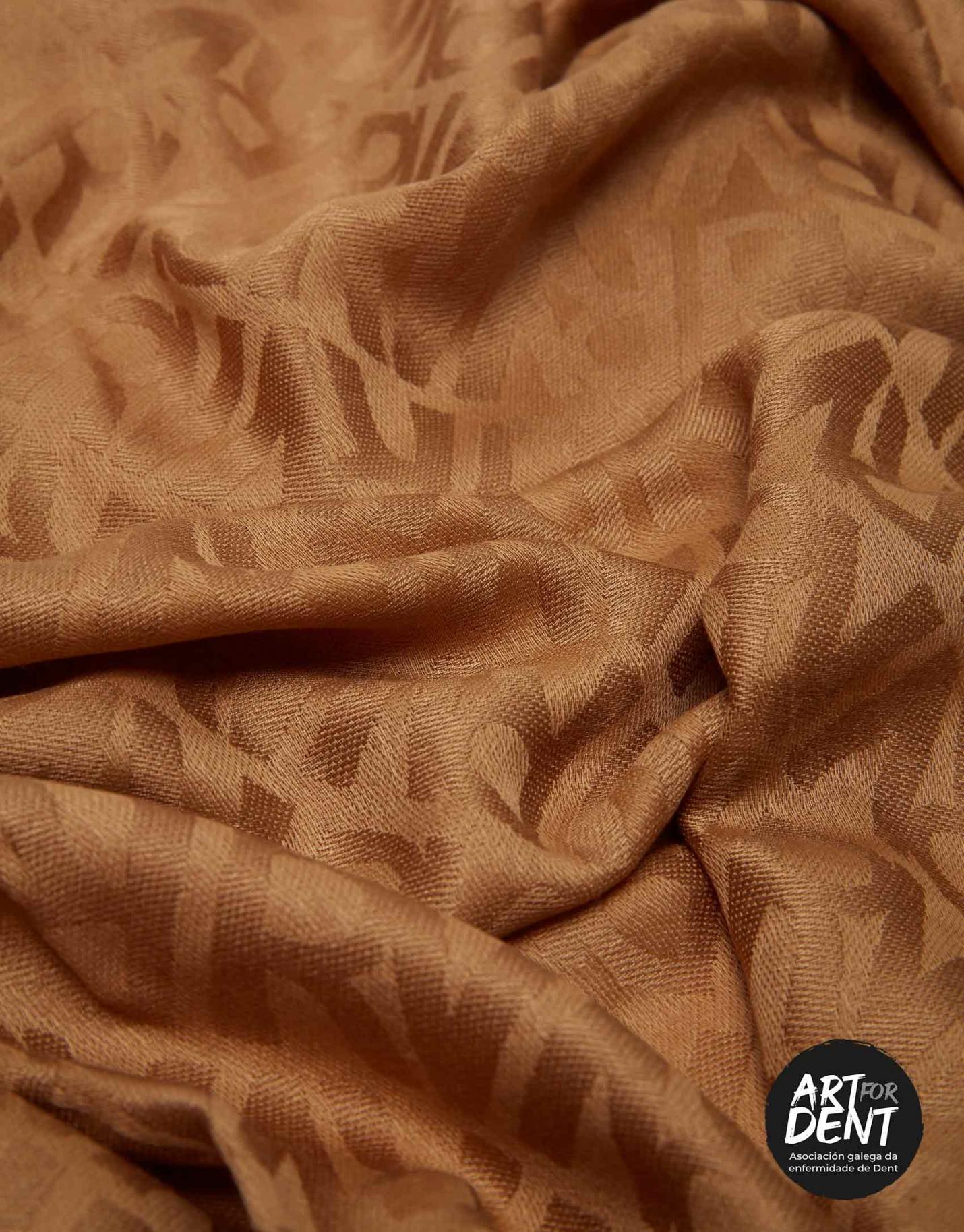 Fular confeccionado en un tejido con jacquard RV en color cámel y con remate ligeramente desflecado. Medidas: 198×93 cm