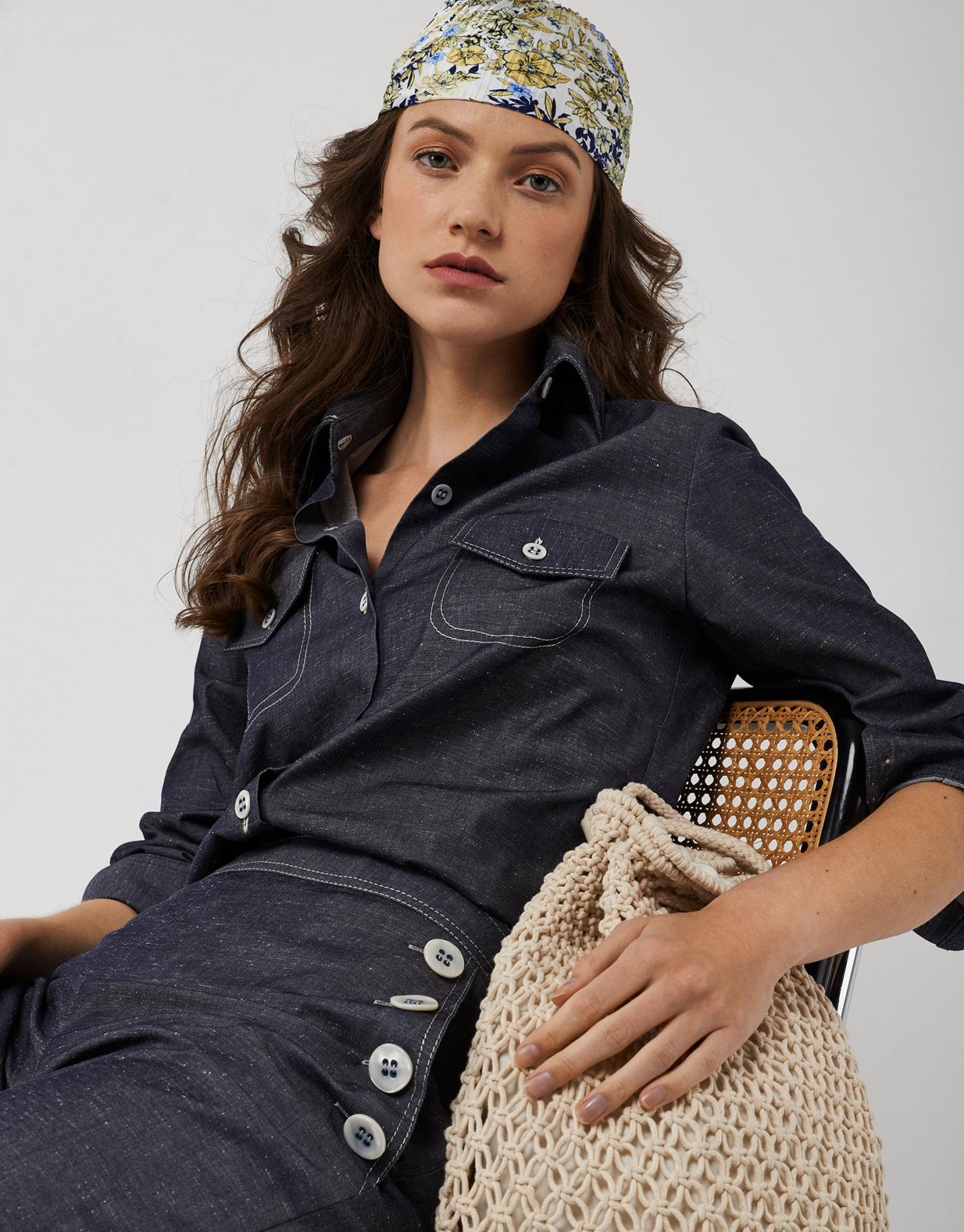 Pañuelo cuadrado confeccionado en un tejido de acabado plisado color blanco con estampado floral en tonos amarillos. Medidas: 88×88 cm …