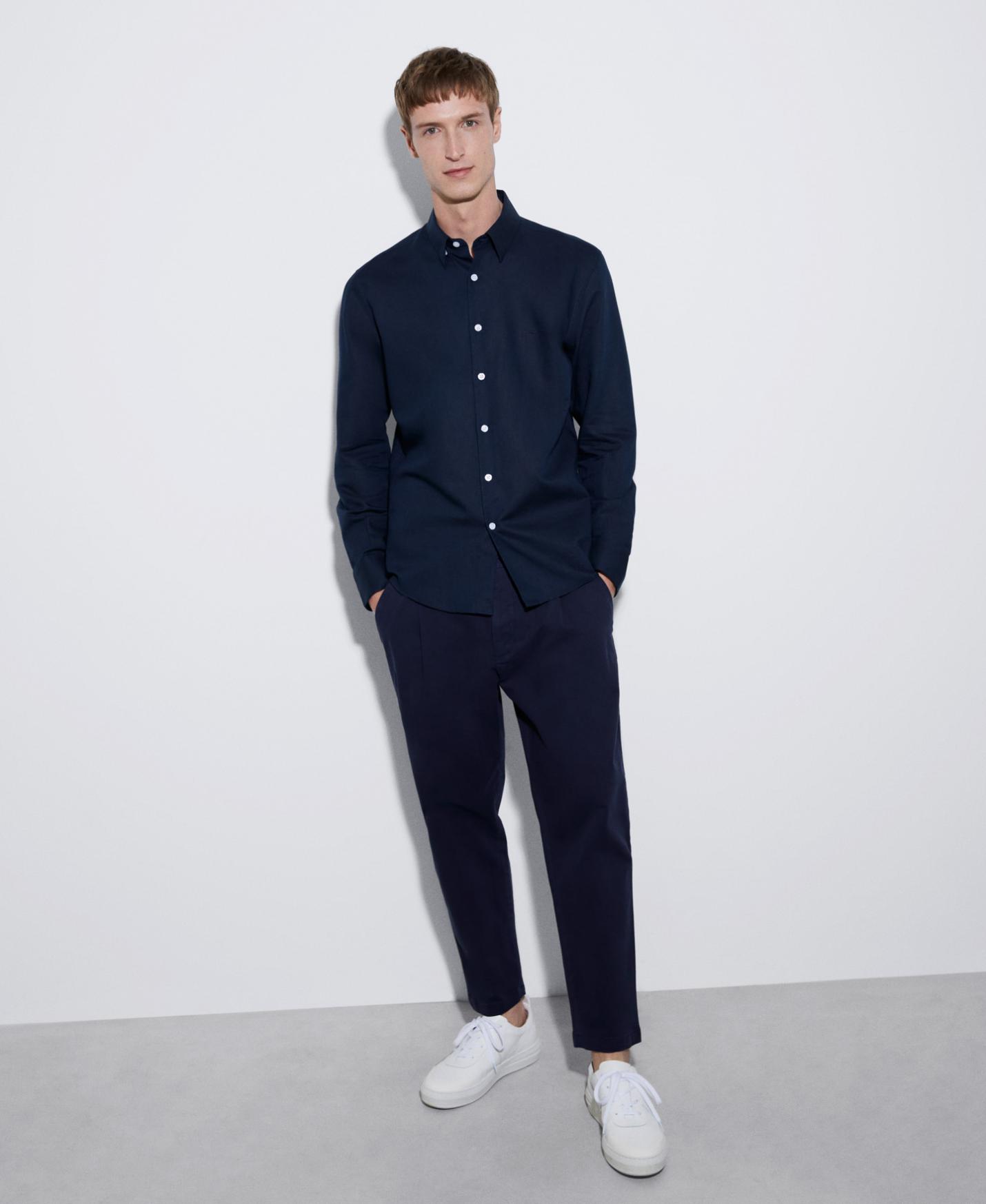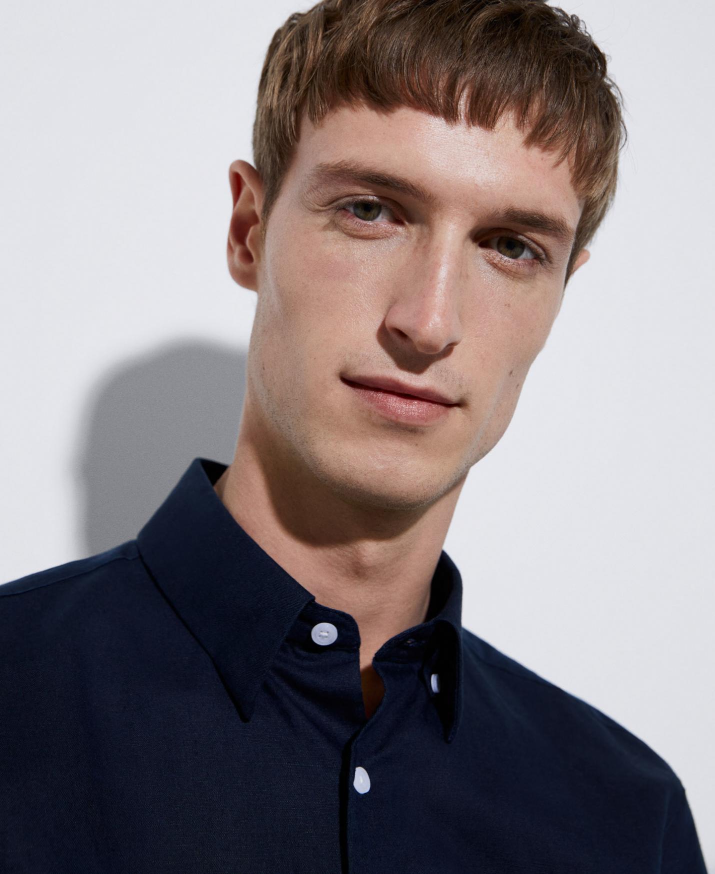 Camisas Adolfo Dominguez | Camisa botones en lino y algodón Azulmarino Hombre