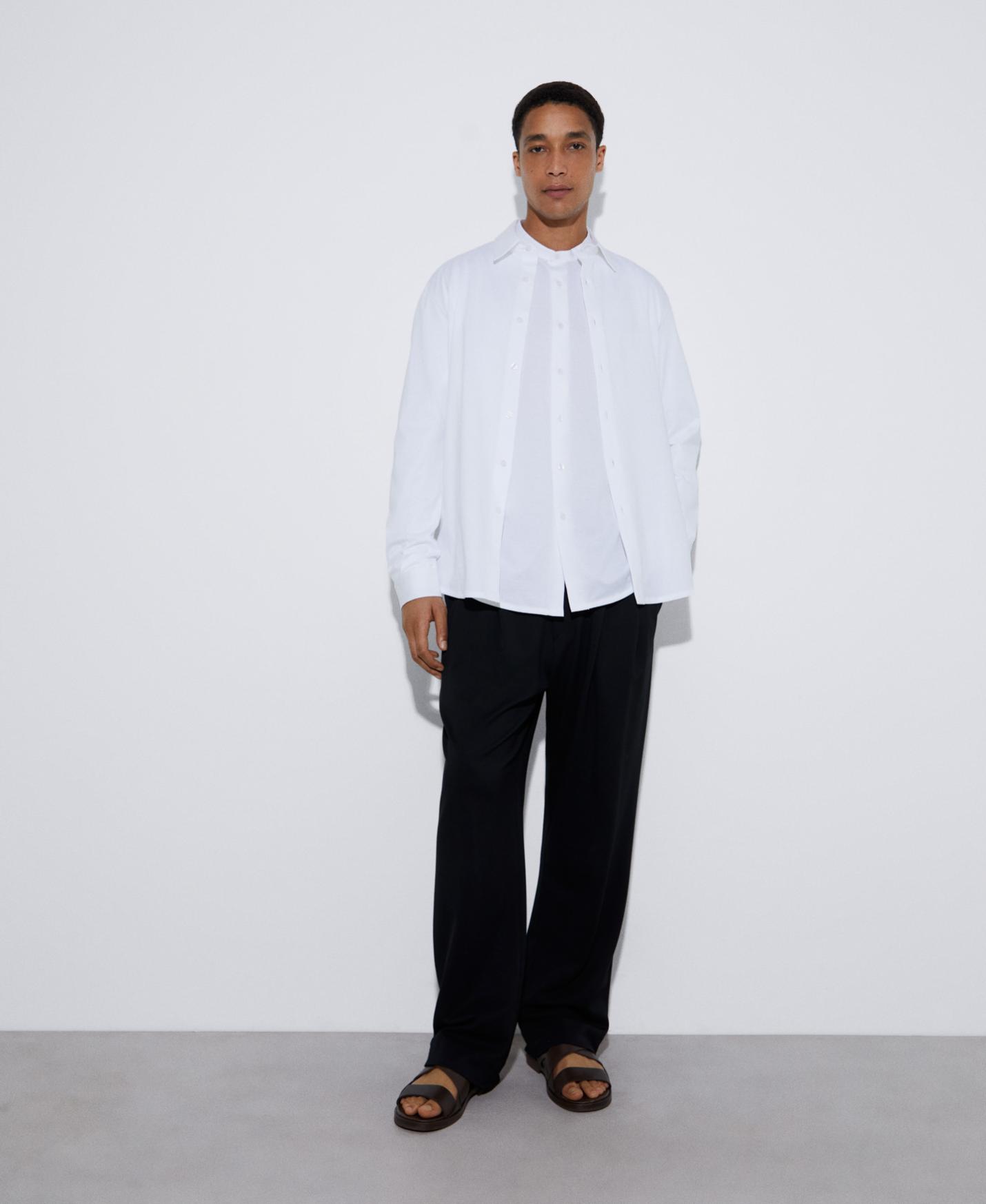 Camisa cuello Mao en algodón 100% con puños estrechos y bajo redondeado. Cierre de botonadura central. Hecha en Portugal.