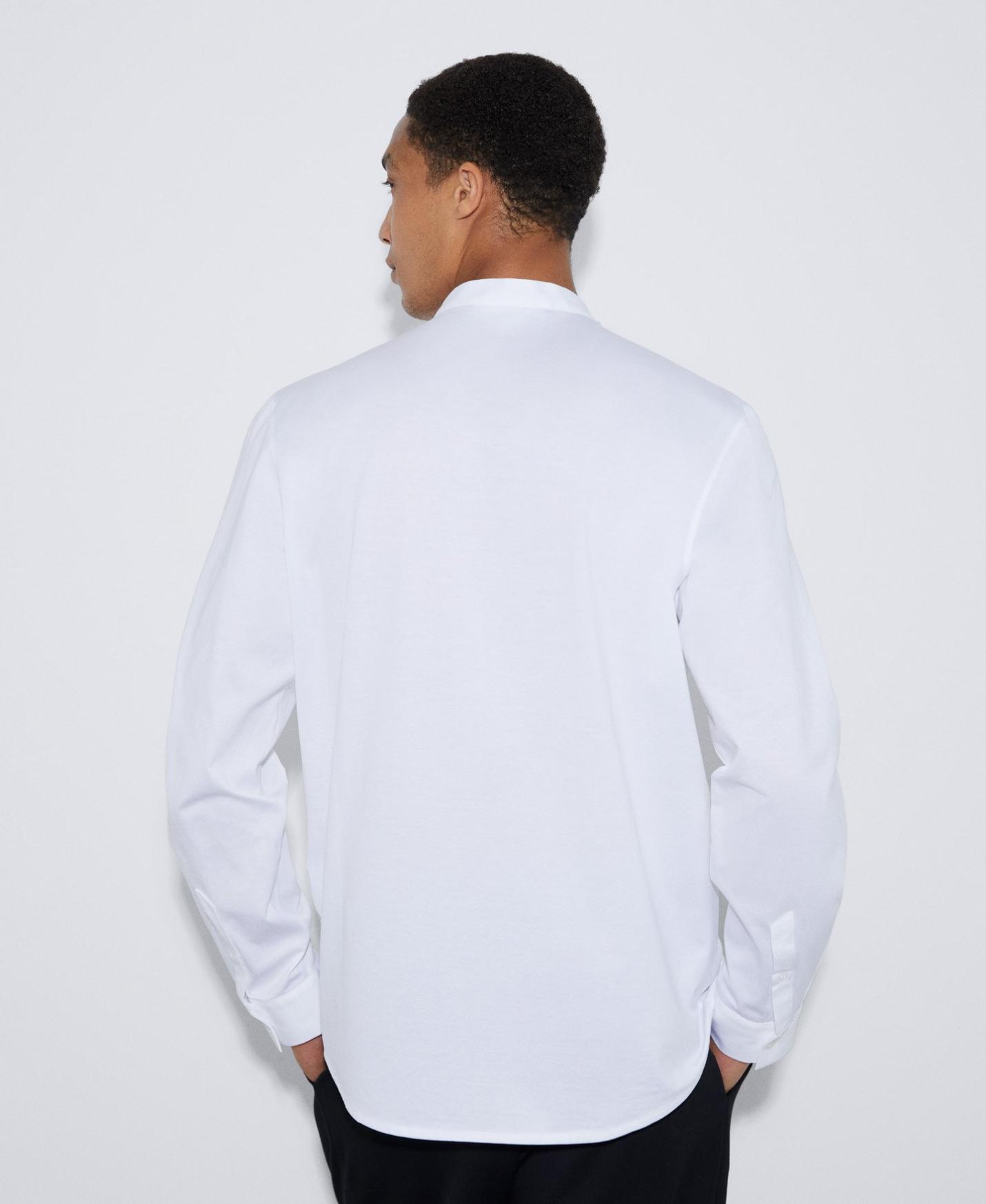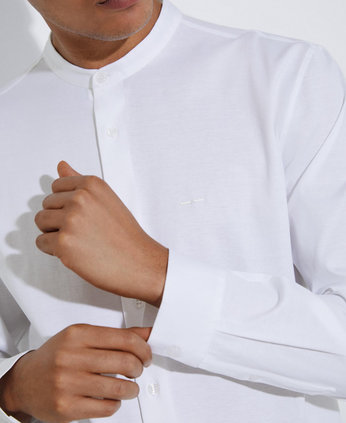 DescripciónRef.120021056121 Camisa cuello Mao en algodón 100% con puños estrechos y bajo redondeado. Cierre de botonadura central….