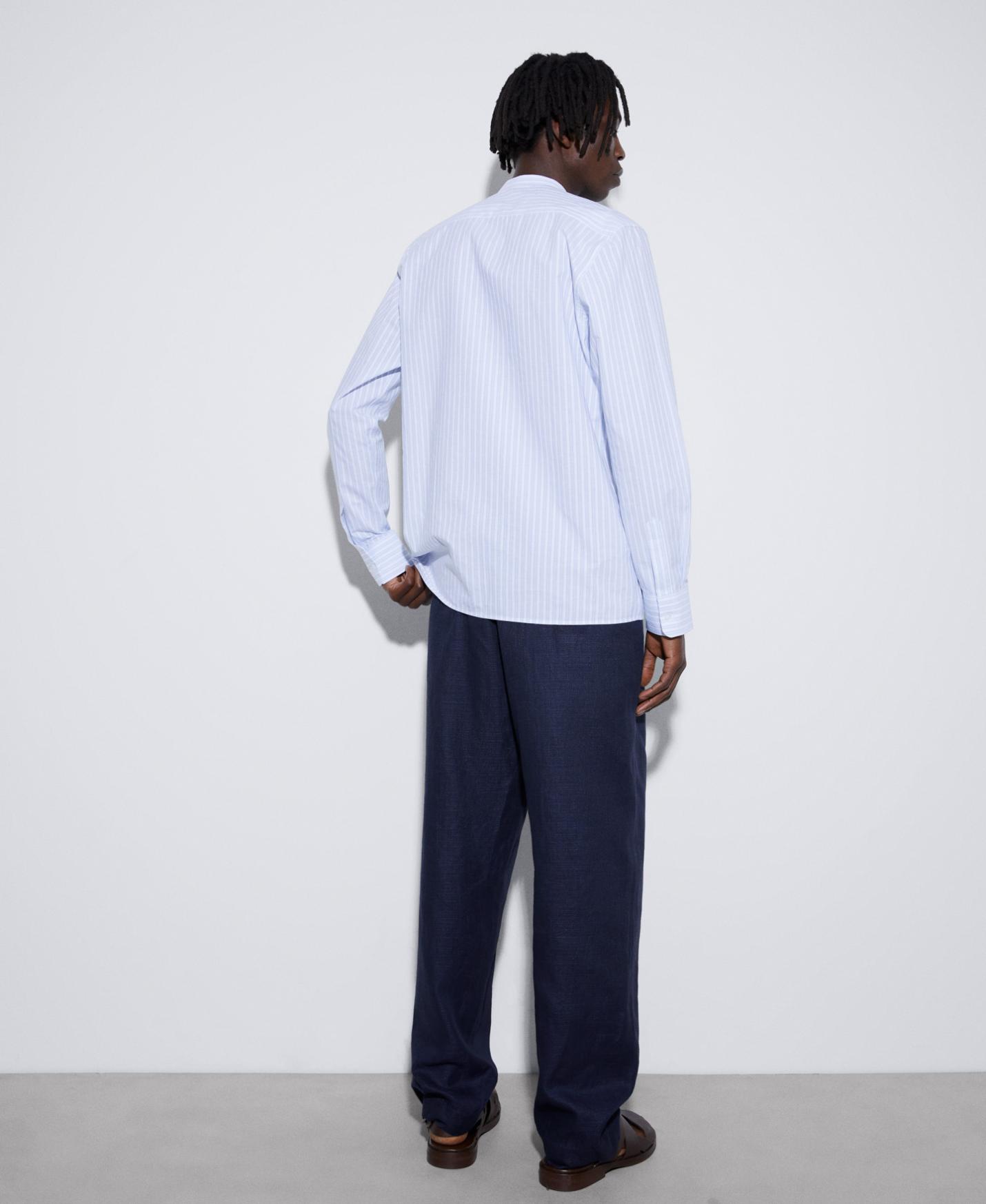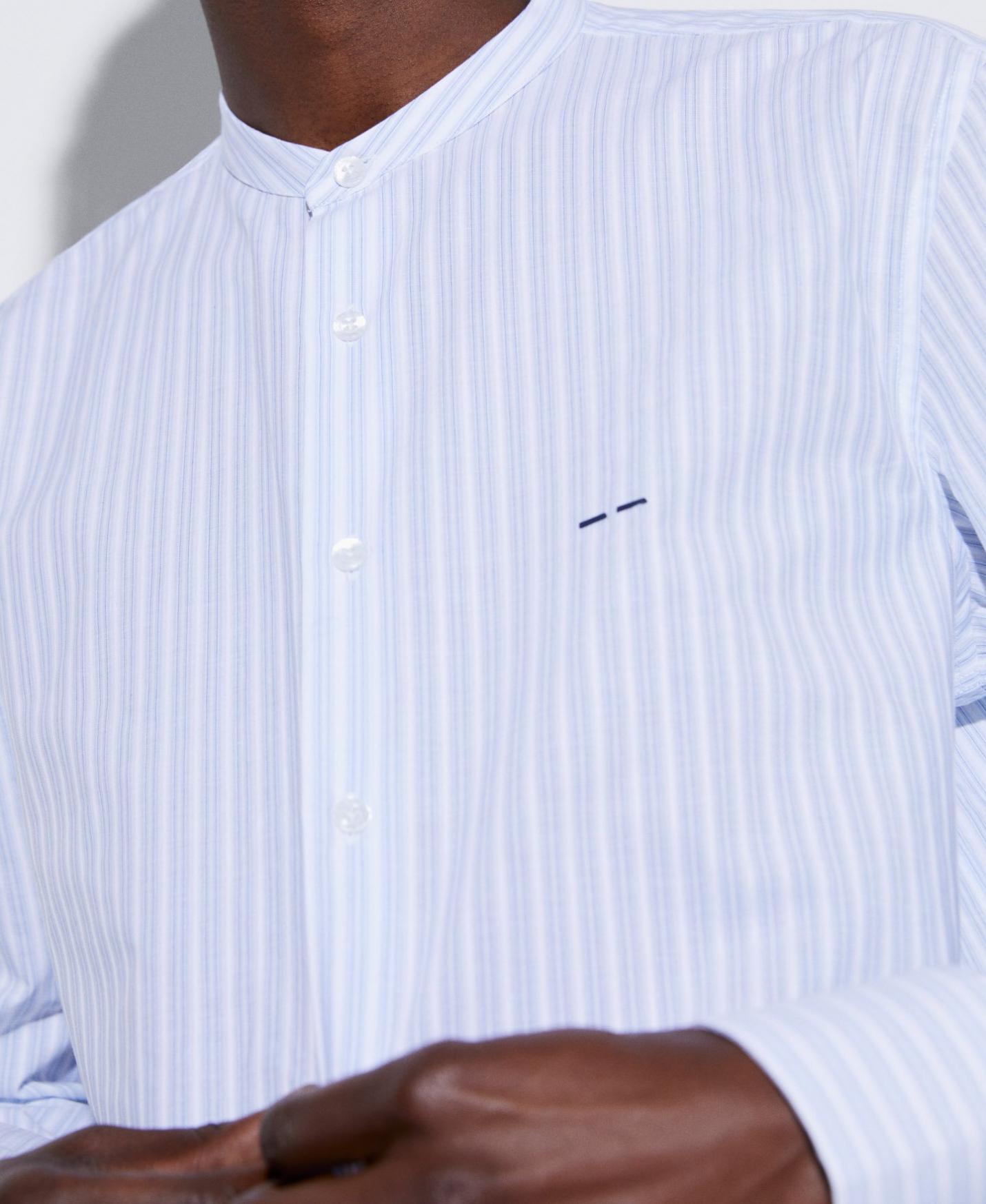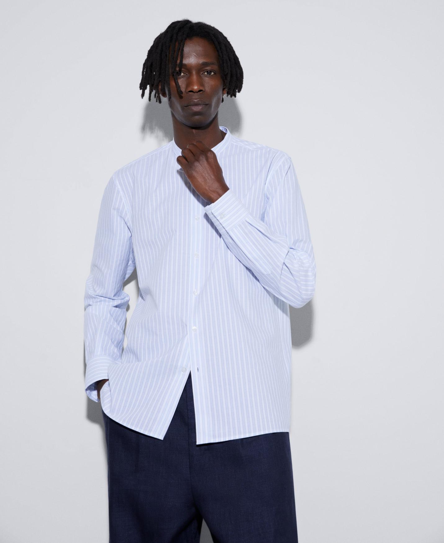 Camisas Adolfo Dominguez | Camisa cuello Mao en algodón orgánico Rayasblanco/Azul Hombre
