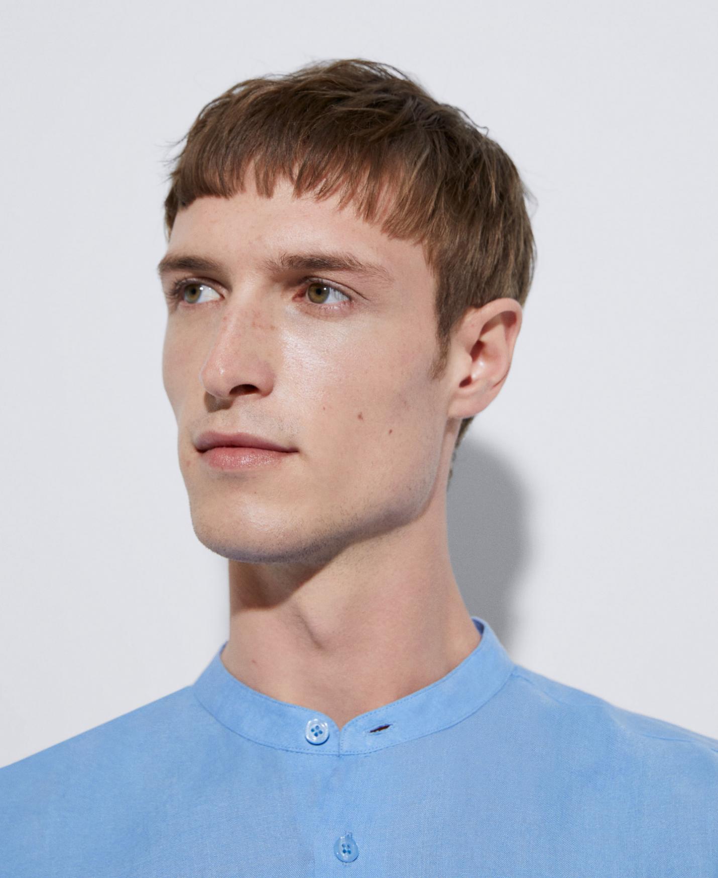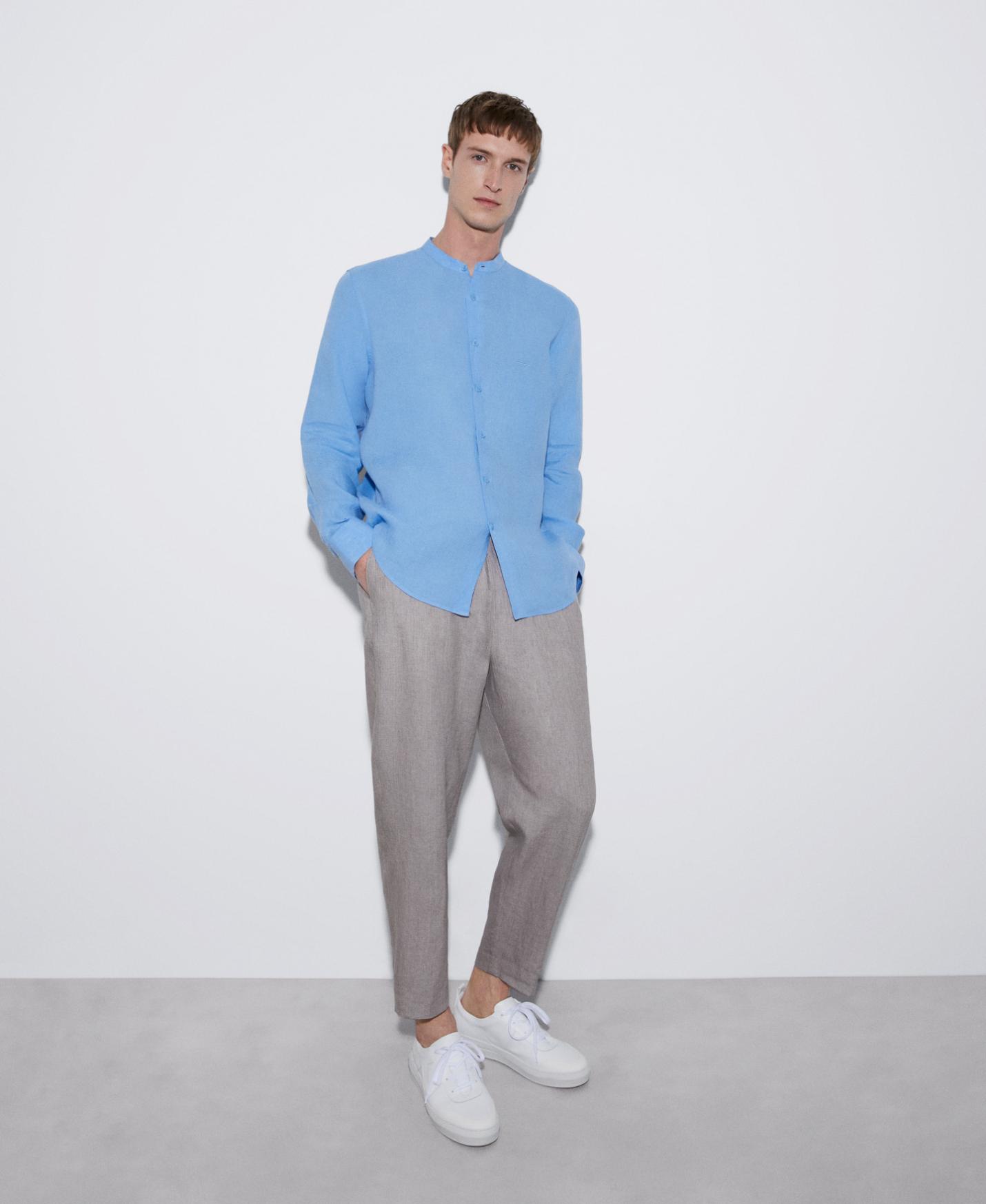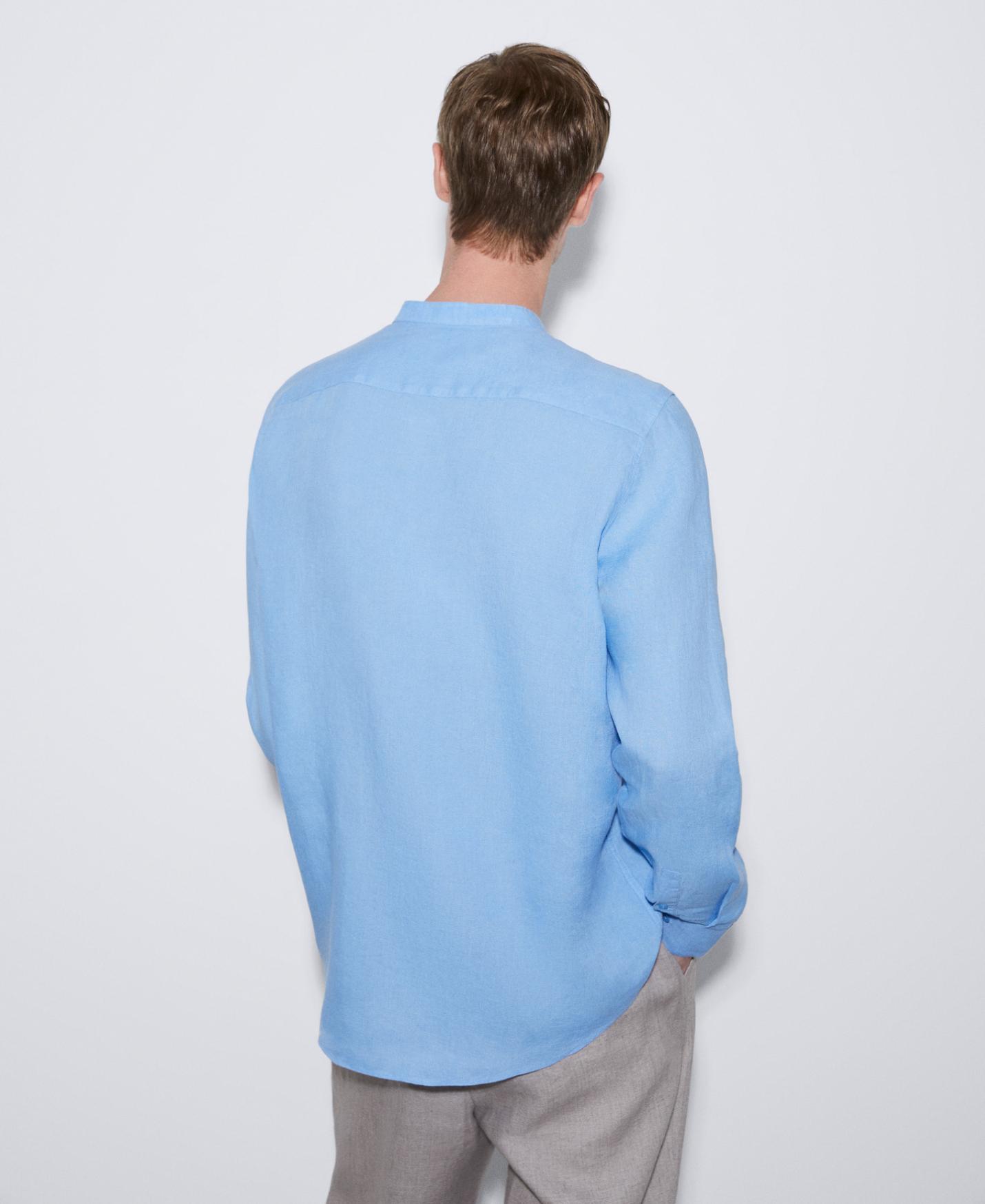 Camisa cuello mao en 100% lino. Abotonada, con manga larga y bajo recto.