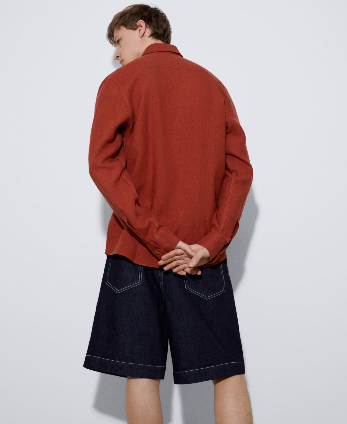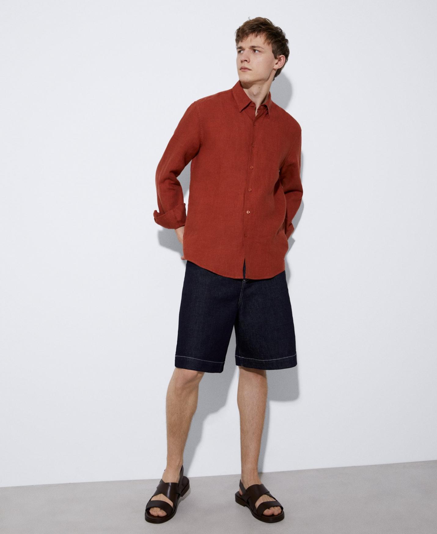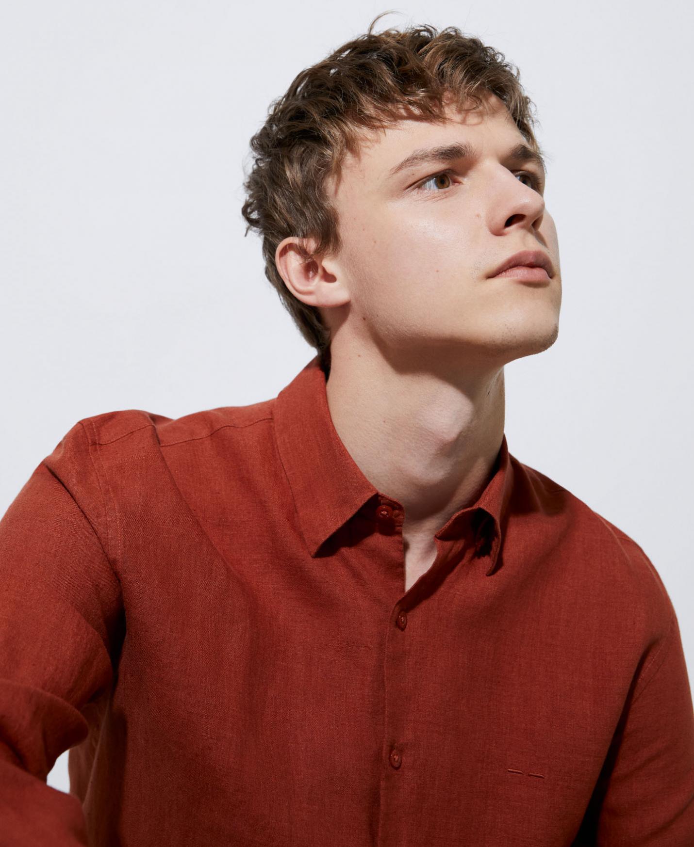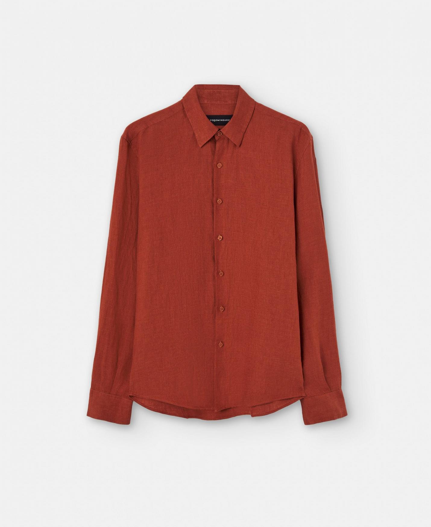 Camisas Adolfo Dominguez | Camisa cuello solapa en lino natural Teja Hombre
