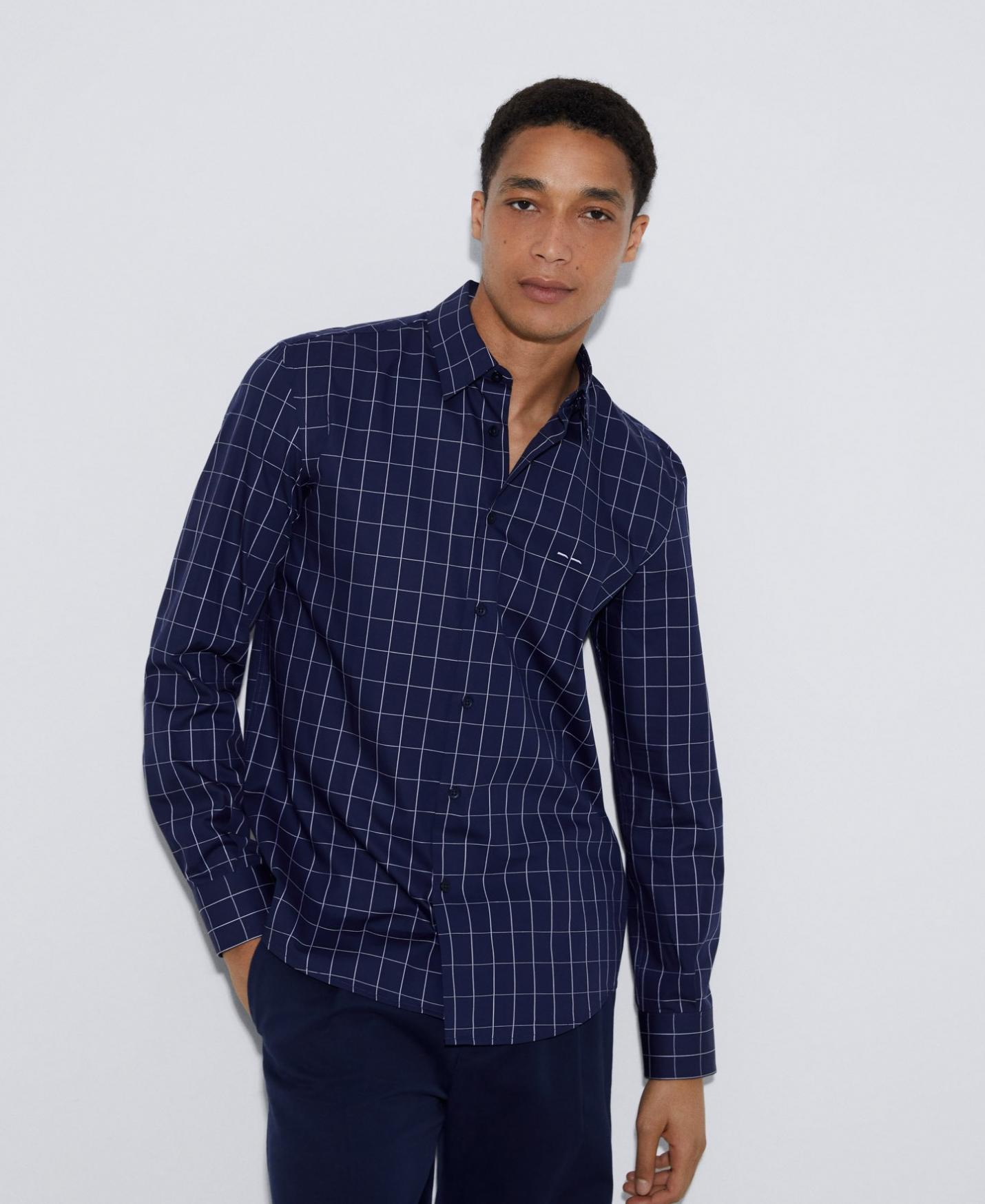 Camisa de cuadros en algodón 100%. Abotonada, con cuello solapa y manga larga abotonada.