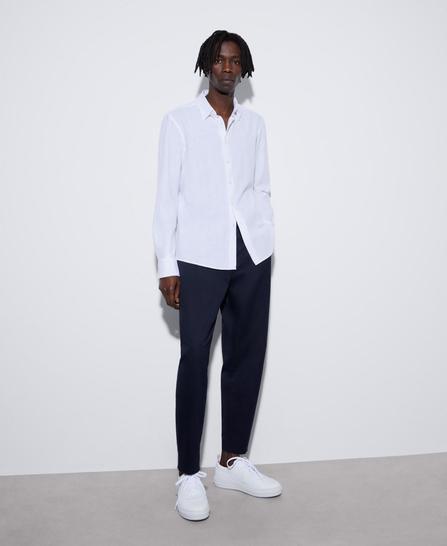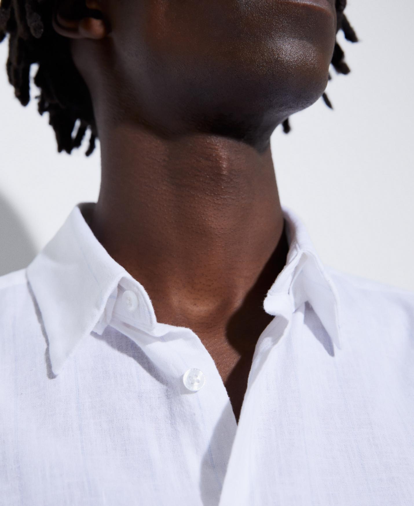 Camisas Adolfo Dominguez | Camisa en algodón orgánico y lino Rayasblanco/Azul Hombre