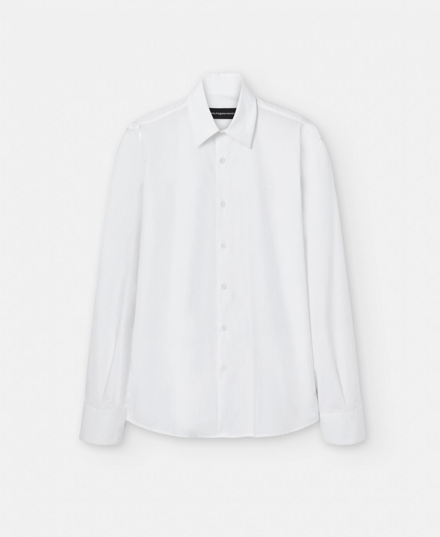 Camisa cuello italiano en algodón responsable. botonadura central, manga larga con puños abotonados y bajo redondeado. Corte regular. Logotipo en pecho.