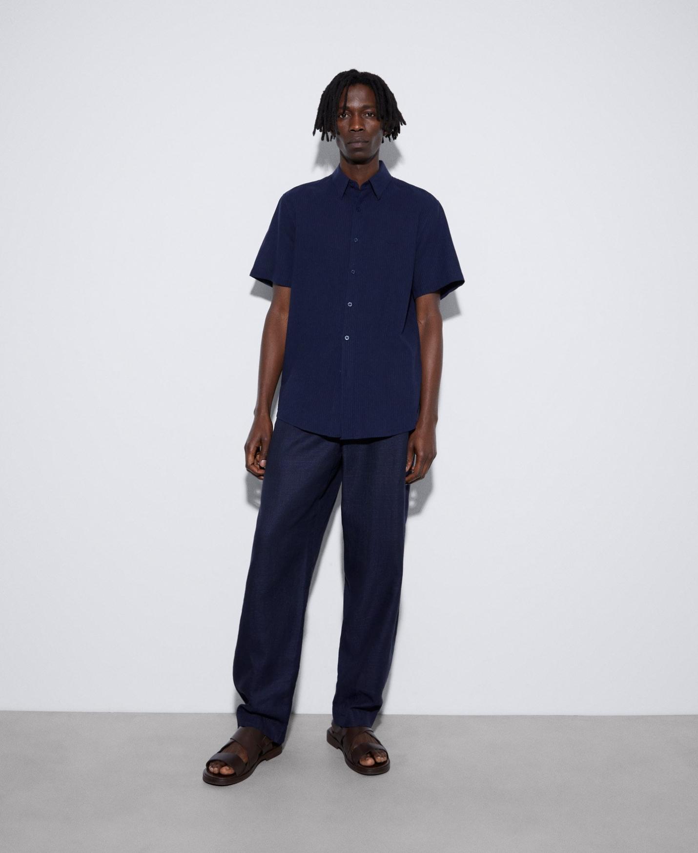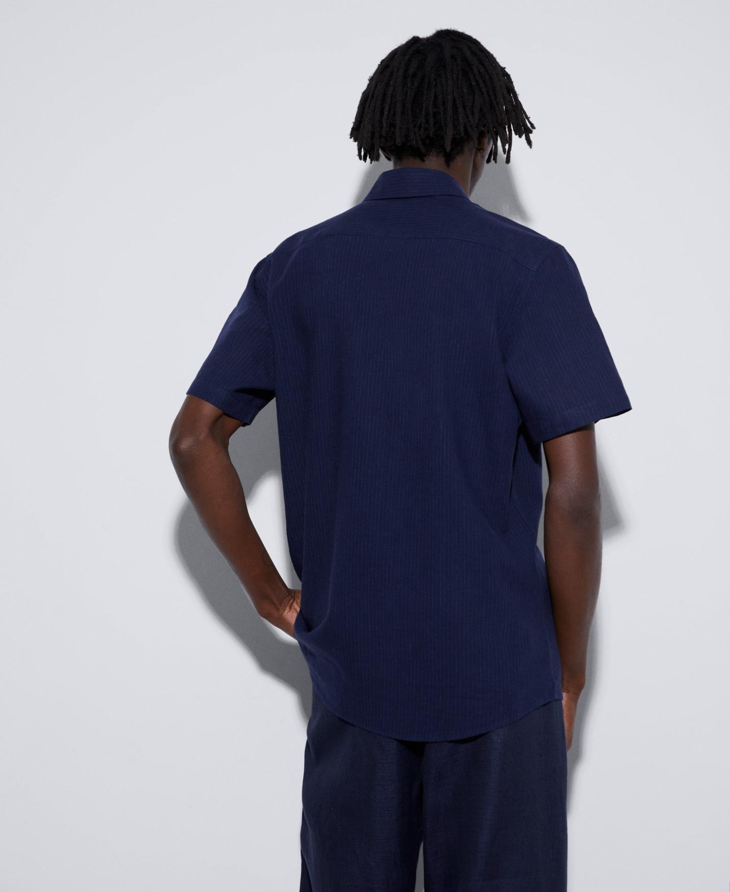 Camisa manga corta en 100% lino. Cuello camisero, botones a contraste, corte recto.