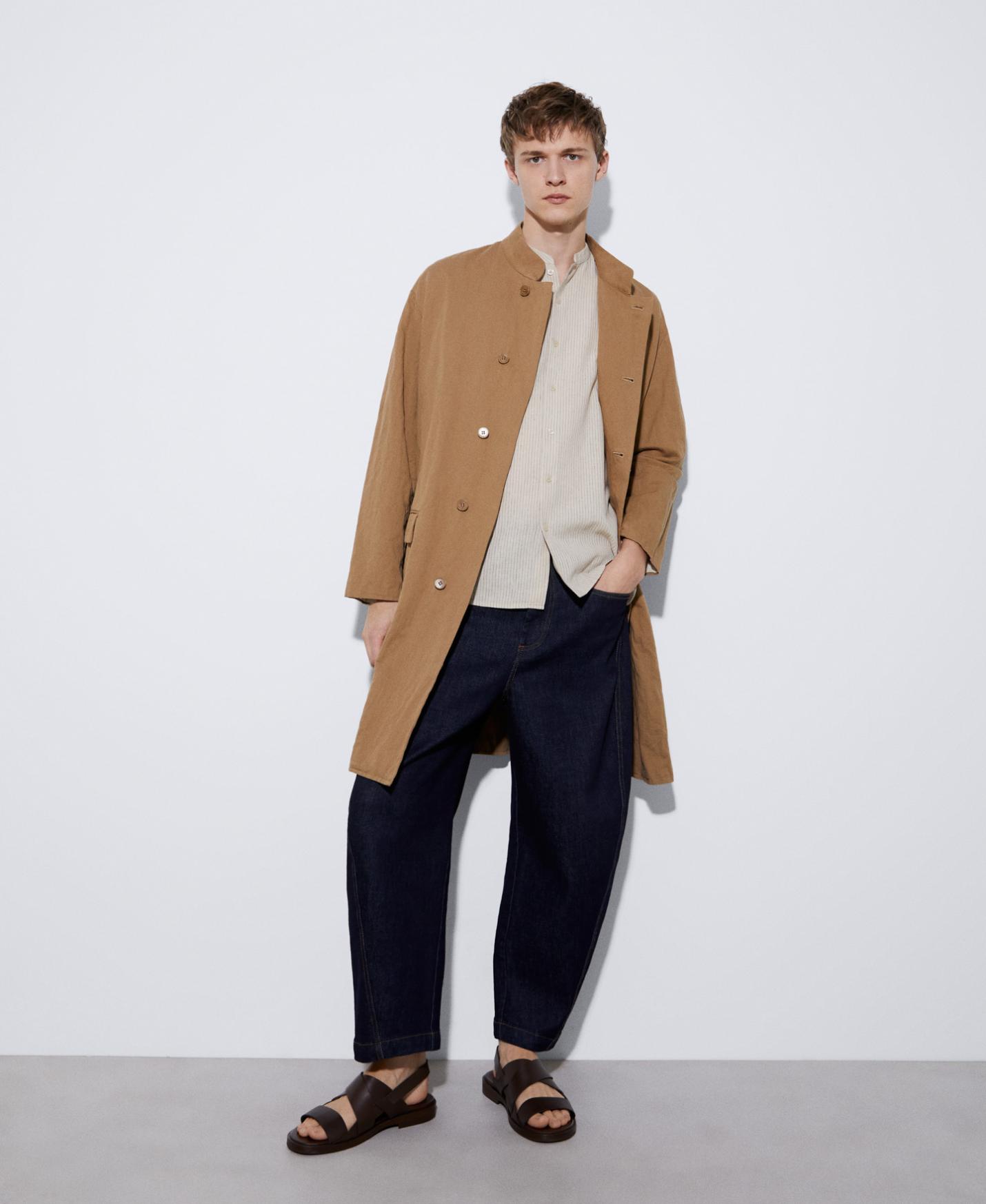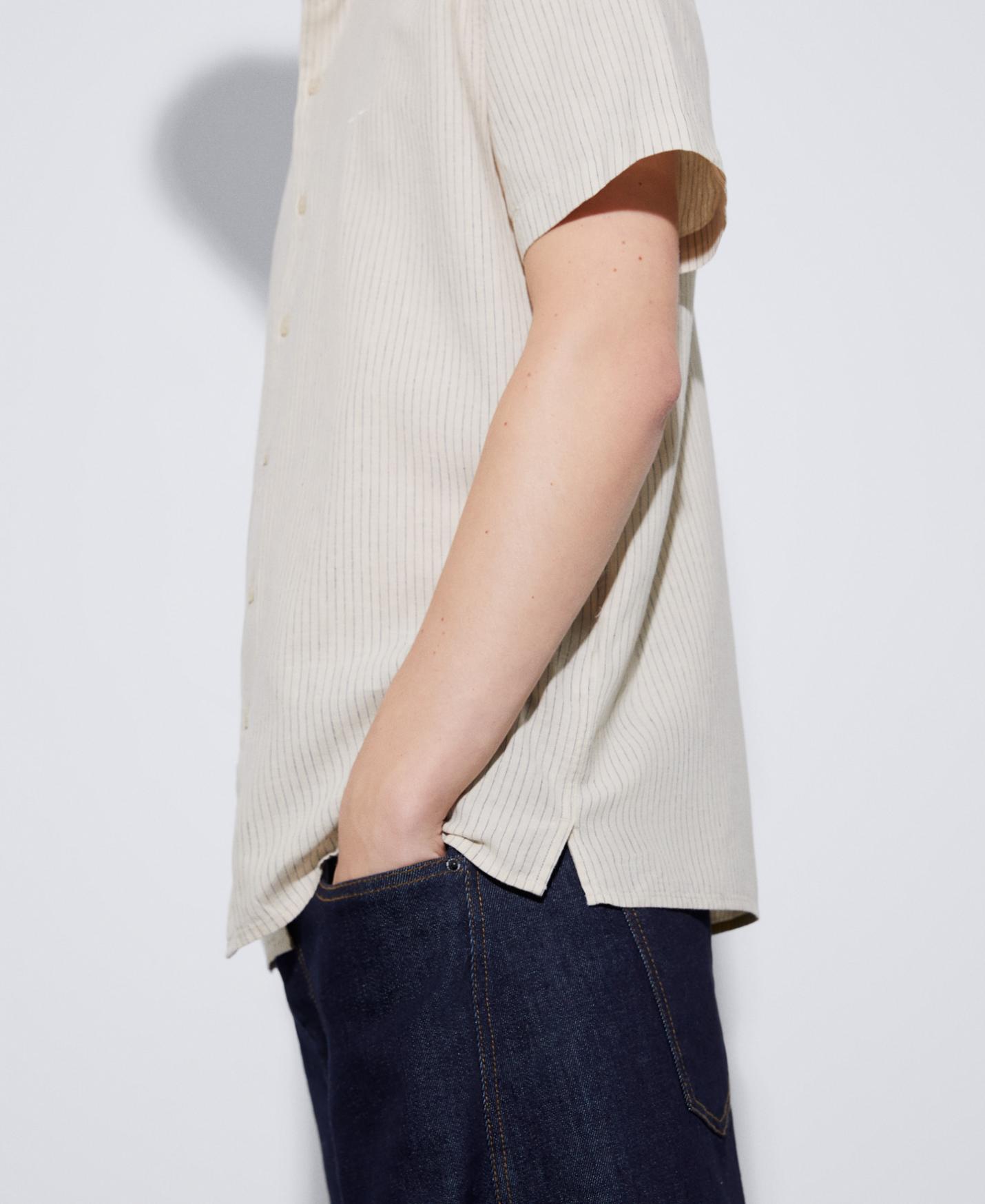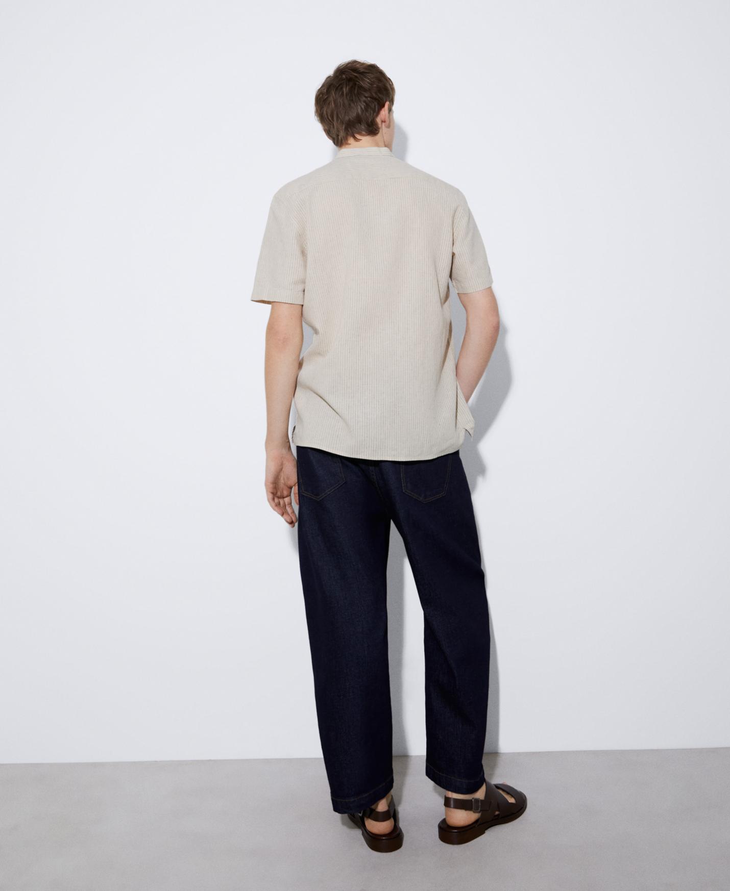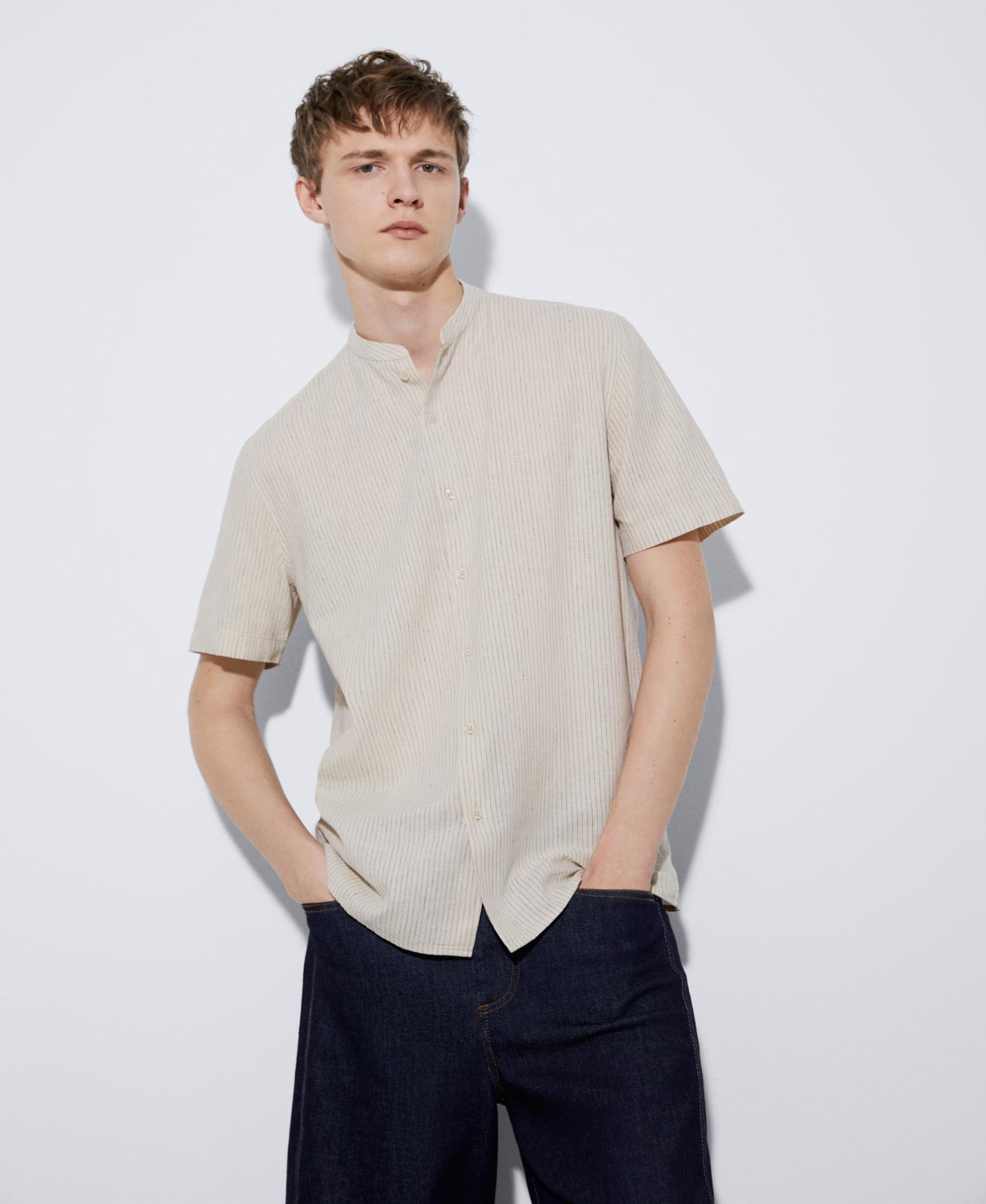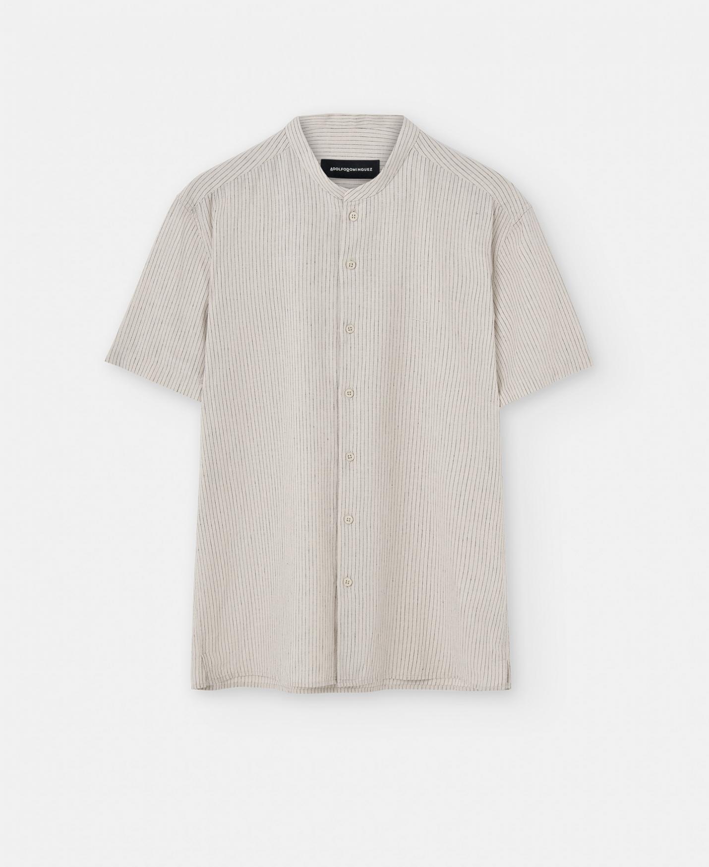 DescripciónRef.122042110121 Camisa manga corta en lino y algodón. Tiene cuello Mao, botonadura central y bajo recto. …