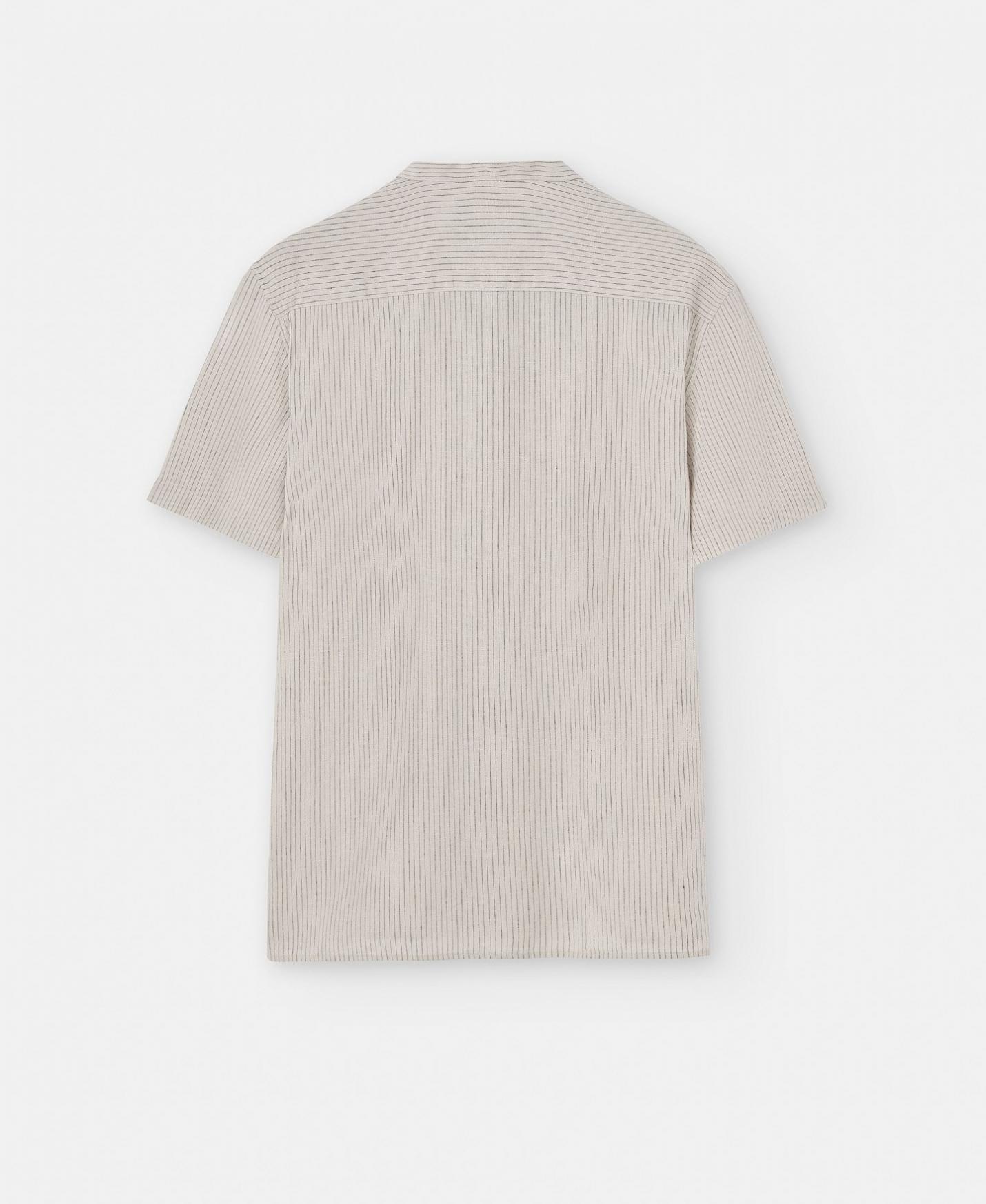 Camisa manga corta en lino y algodón. Tiene cuello Mao, botonadura central y bajo recto. Logotipo bordado en pecho.