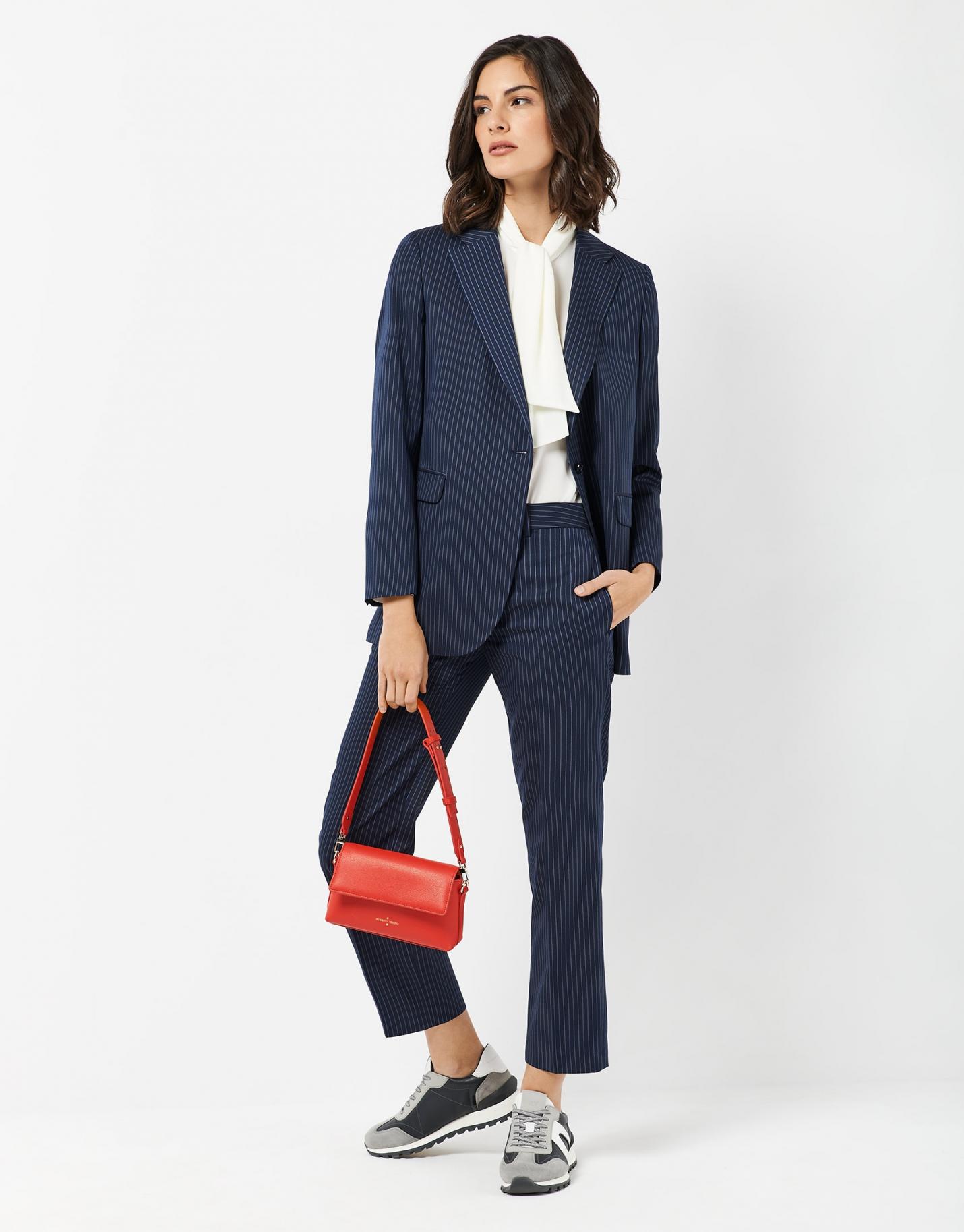 Blusa de manga larga confeccionada en un tejido fluido color crudo con cuello jabot rematado en lazo entrecruzado. Corte recto, espalda con canesú y pliegue y manga larga rematada en puños. Cierre con botonadura oculta en frontal. …