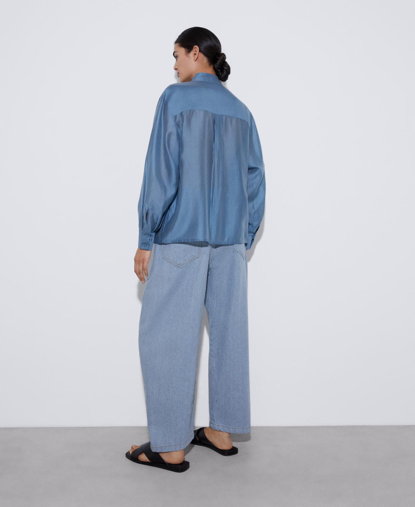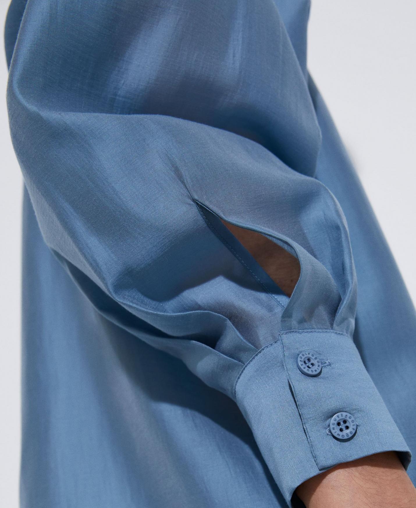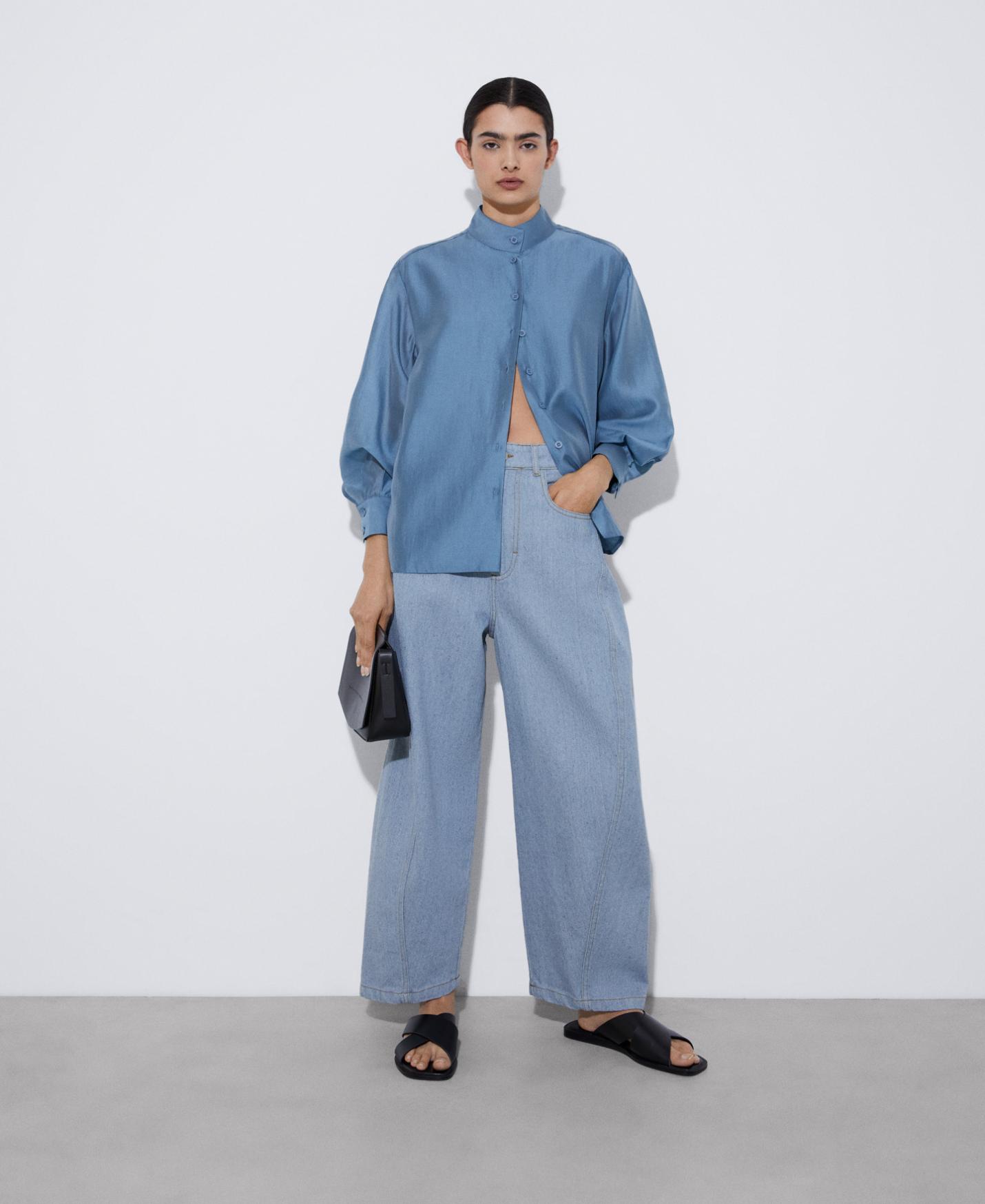Blusa cuello Mao en lyocell responsable de TENCEL™. Tiene tapeta frontal con botones vistos y puños anchos en voile.