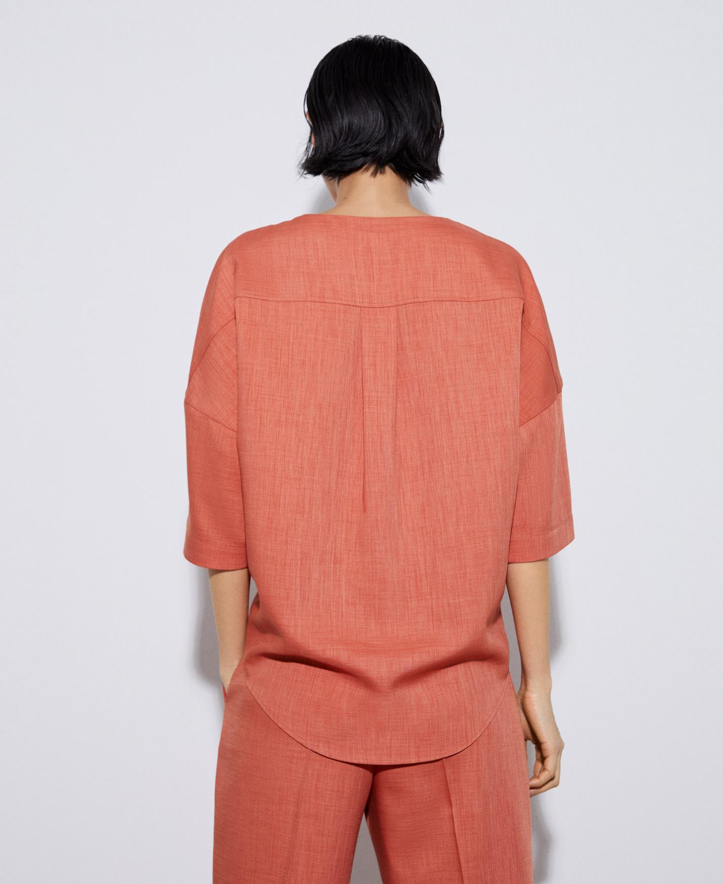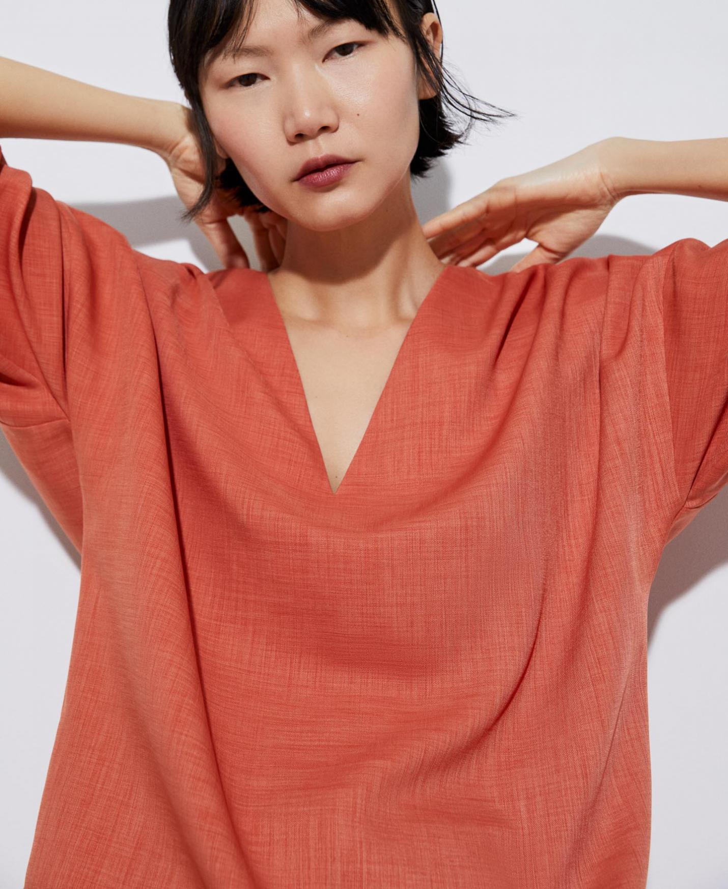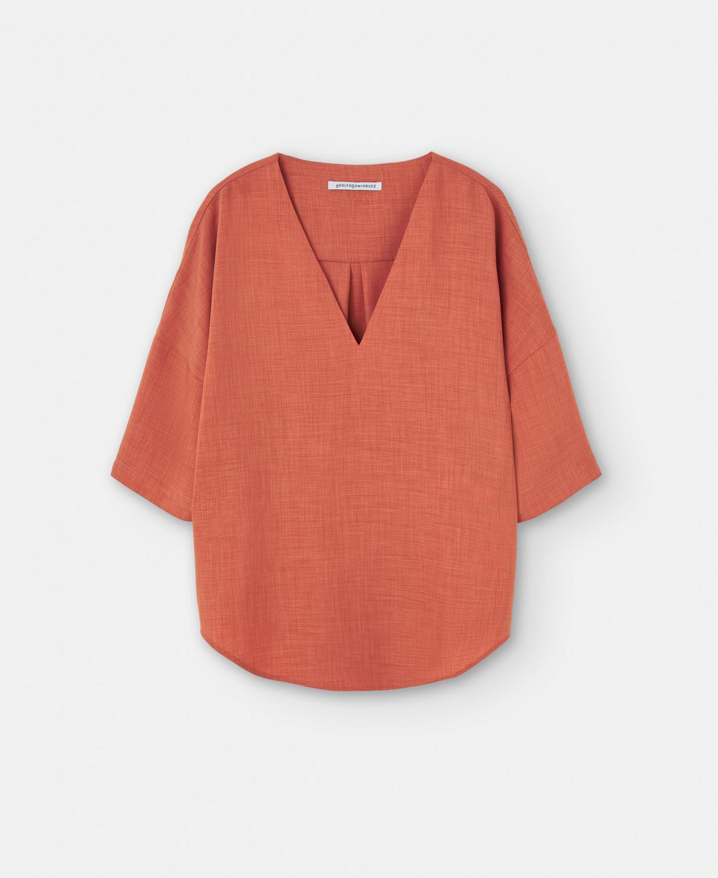 Camisas y tops Adolfo Dominguez | Blusa escote pico en poliéster reciclado Naranja Mujer