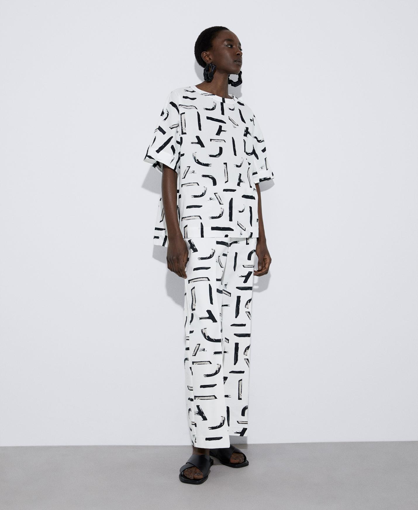 Camisas y tops Adolfo Dominguez | Blusa estampada cuello caja Blancoynegro Mujer