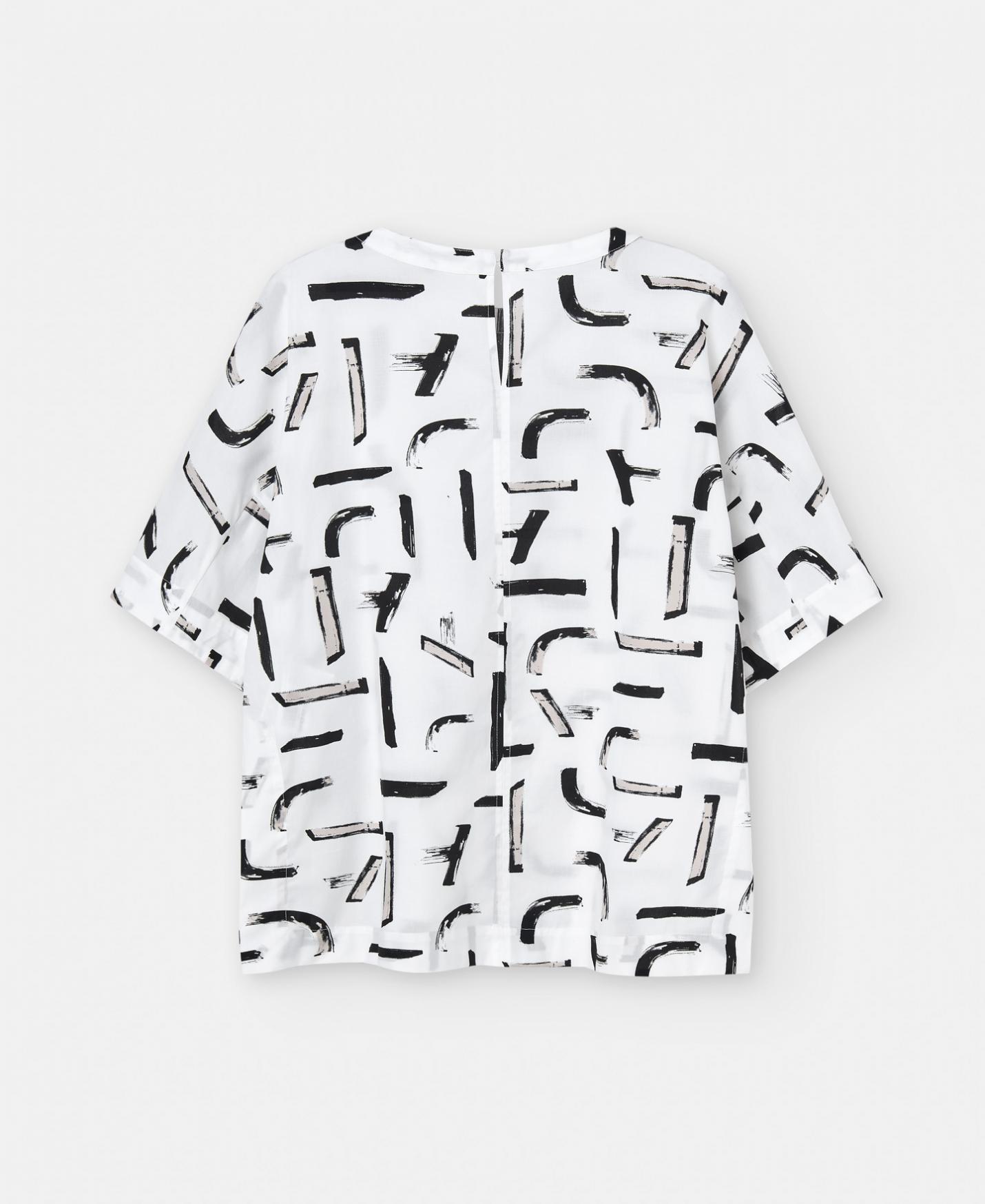 Blusa estampada de cuello caja y manga corta con aberturas laterales en algodón.