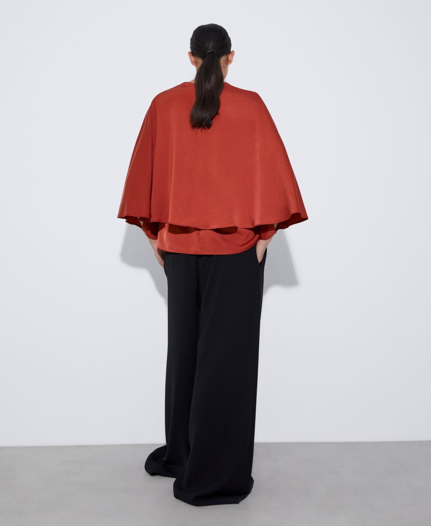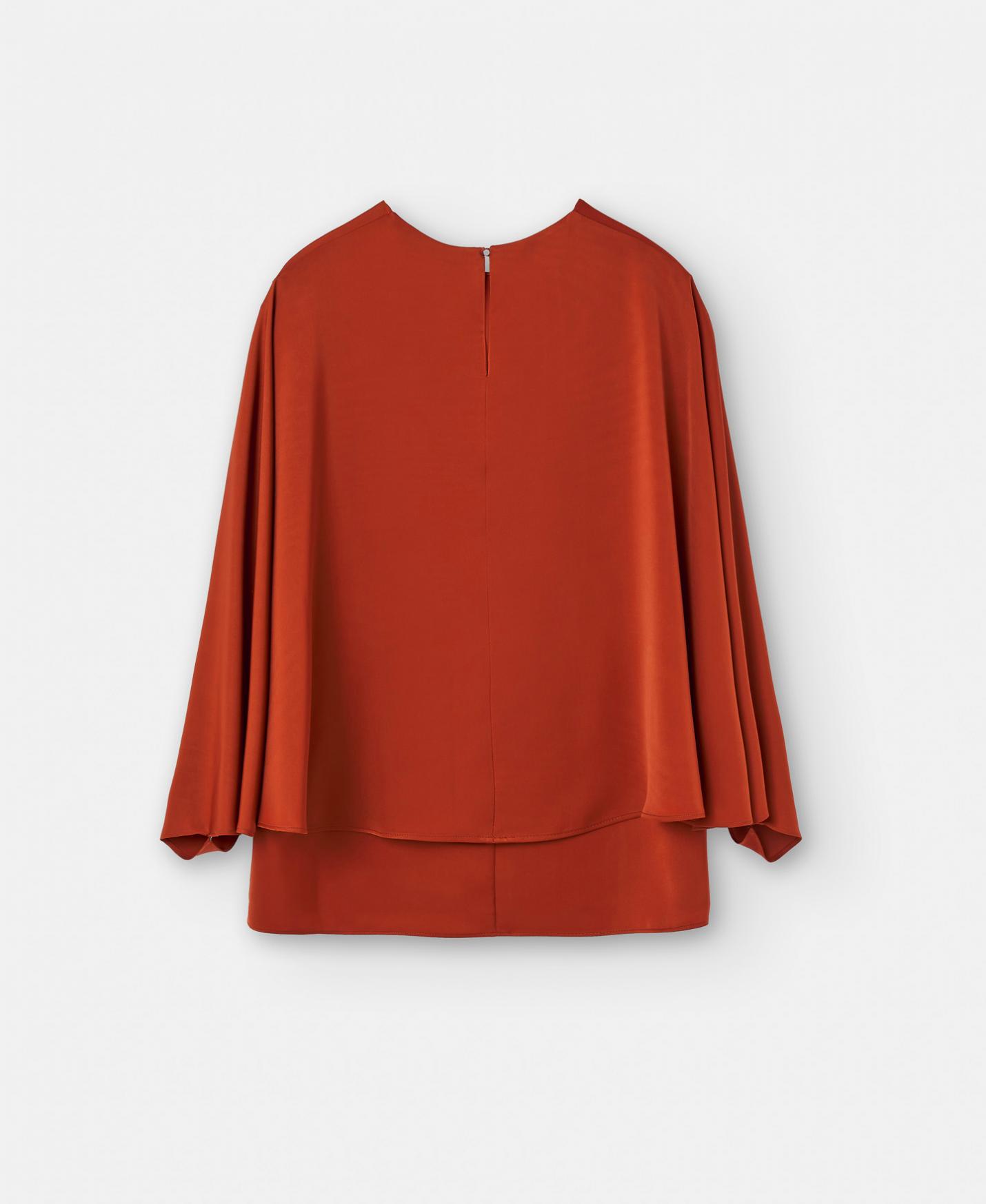 Camisa de cóctel con cuello caja y línea recta. Capa trasera que crea la manga. Botón en manga.