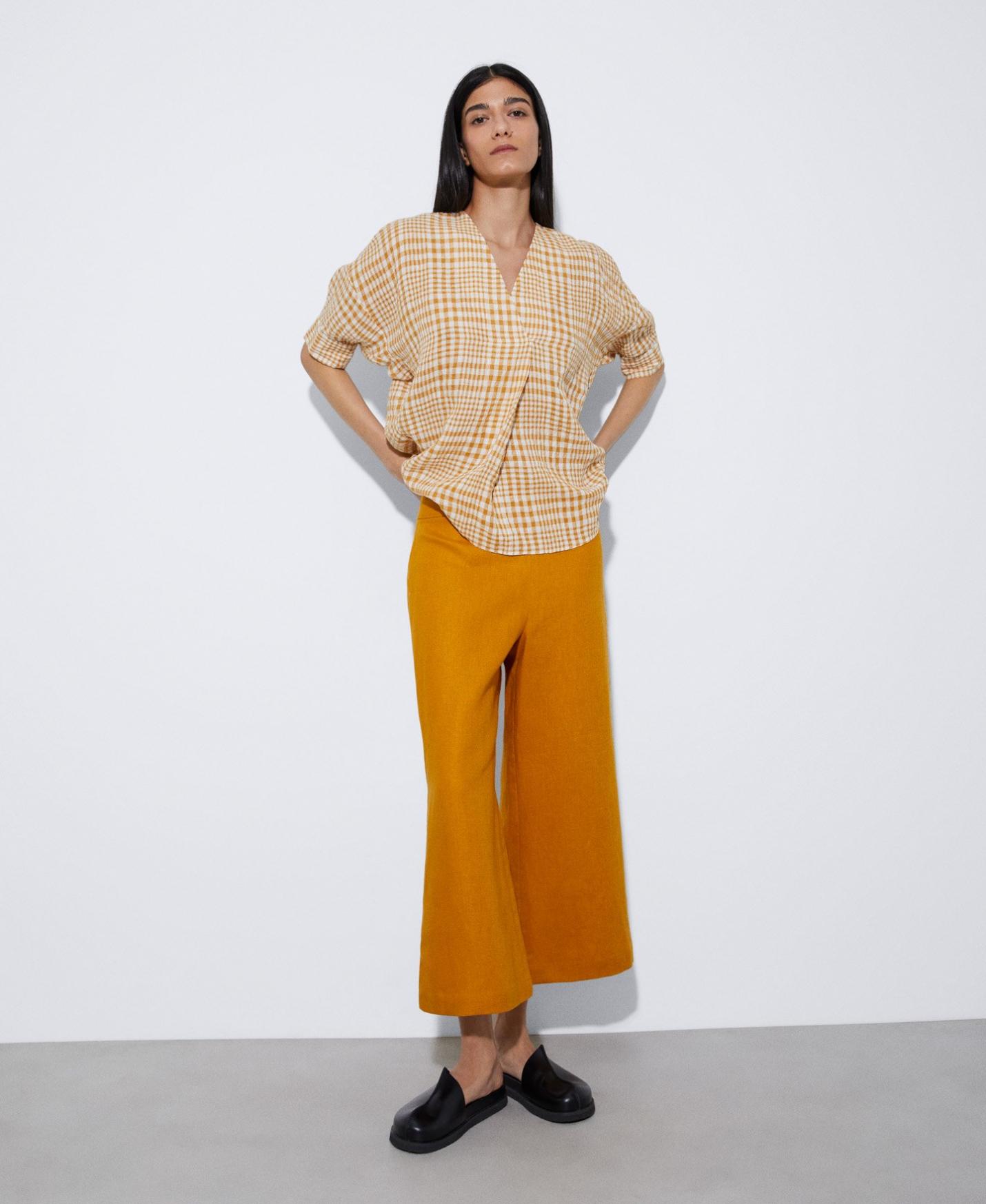Sé el primero en valorar “Camisas y tops Adolfo Dominguez | Camisa escote pico en lino y algodón Naranjacuadros Mujer”