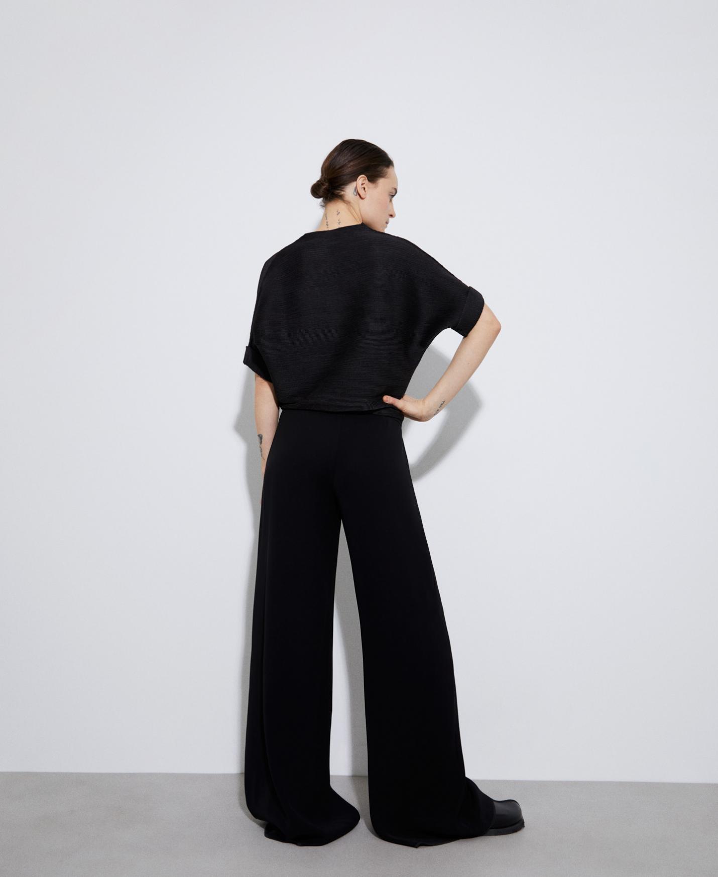Sudadera manga japonesa en crinkle. Tiene escote pico en rib y manga corta con dobladillo. Corte holgado y bajo recto.