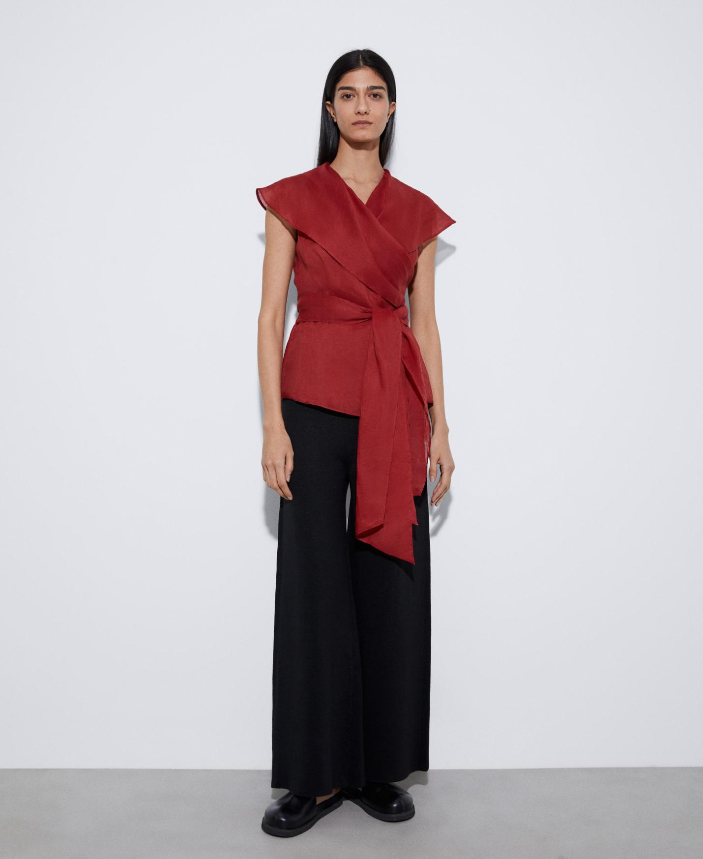 Camisas y tops Adolfo Dominguez | Top cropped morriña con cuello chal Rojo Mujer