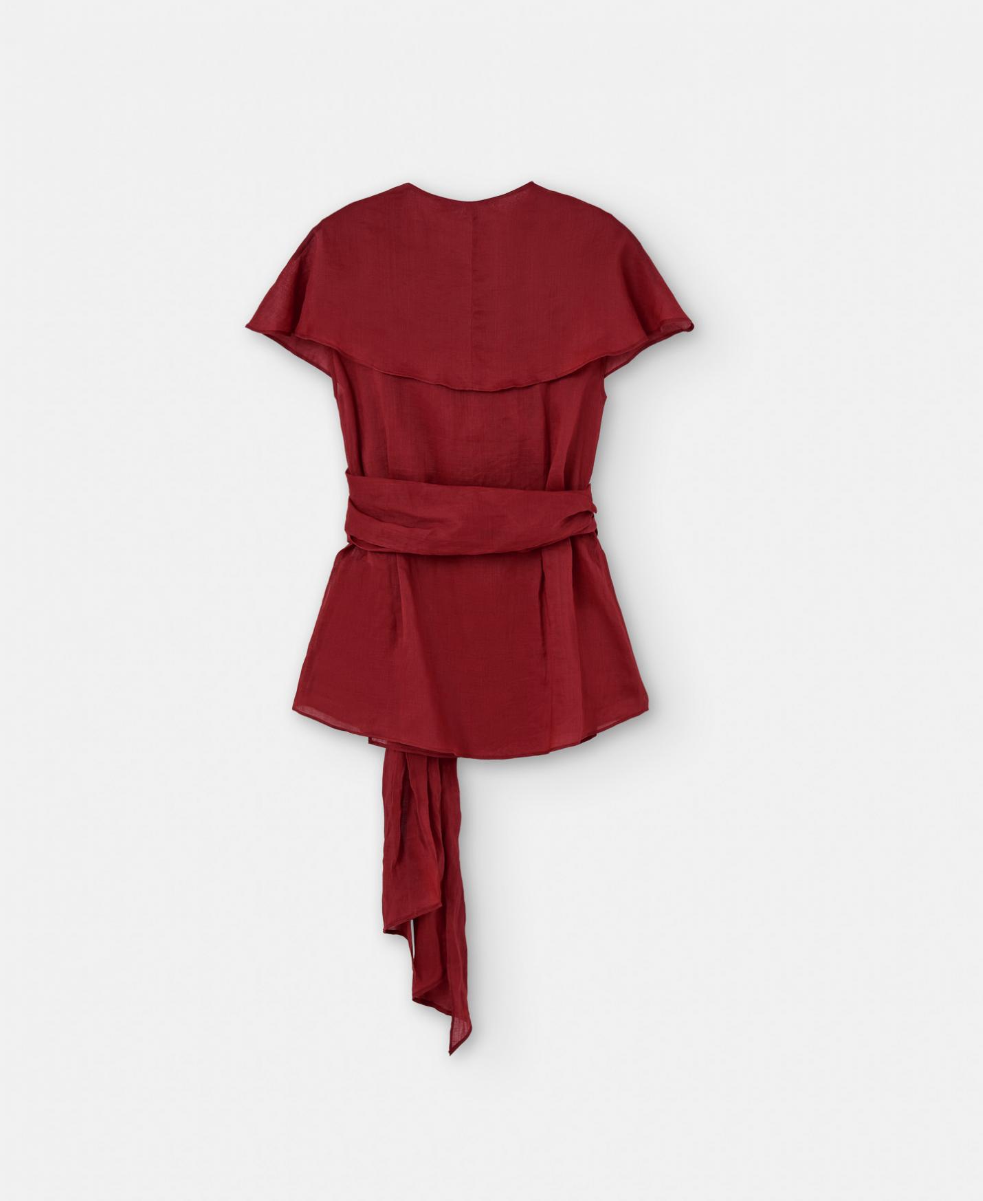 Top cropped de inspiración tradicional en 100% ramio. Tiene cuello chal, cuerpo cruzado, manga corta y cinturón.