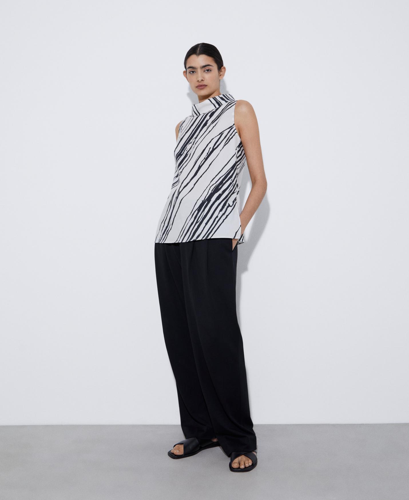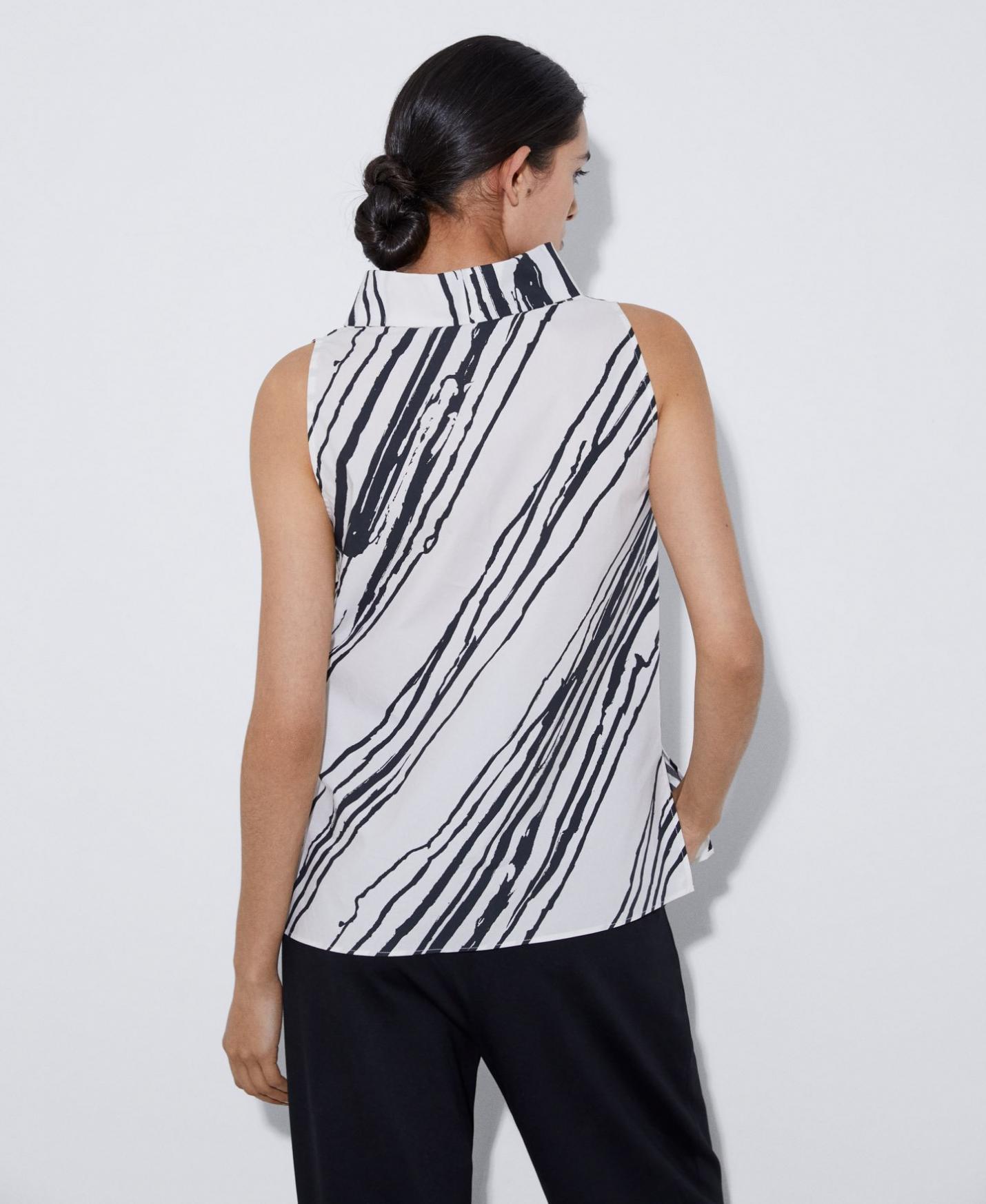 Top estampado de cuello halter con aberturas laterales en 100% algodón responsable.