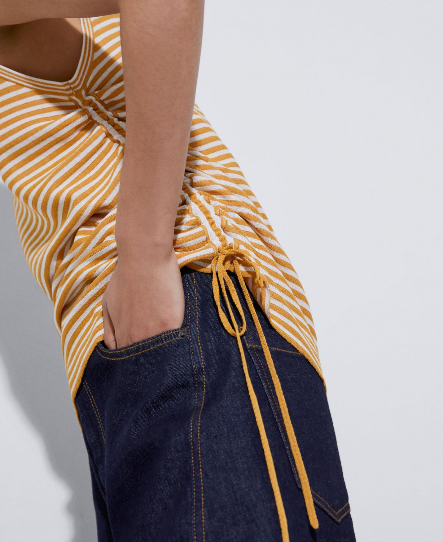 Top de rayas en punto de viscosa. Doble frontura. Frunce en lateral.