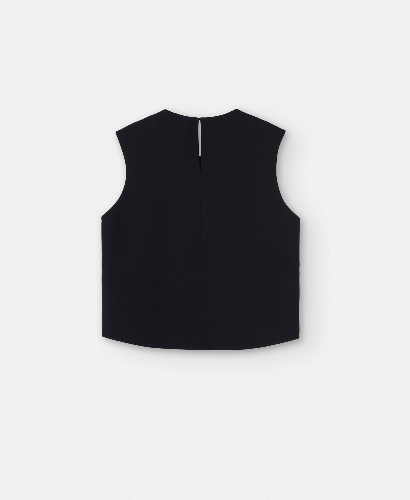 Top recto en poliéster reciclado. Tiene escote caja, con pestaña y botón oculto en espalda.