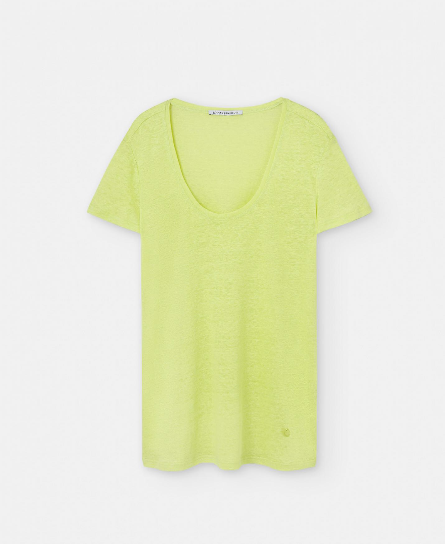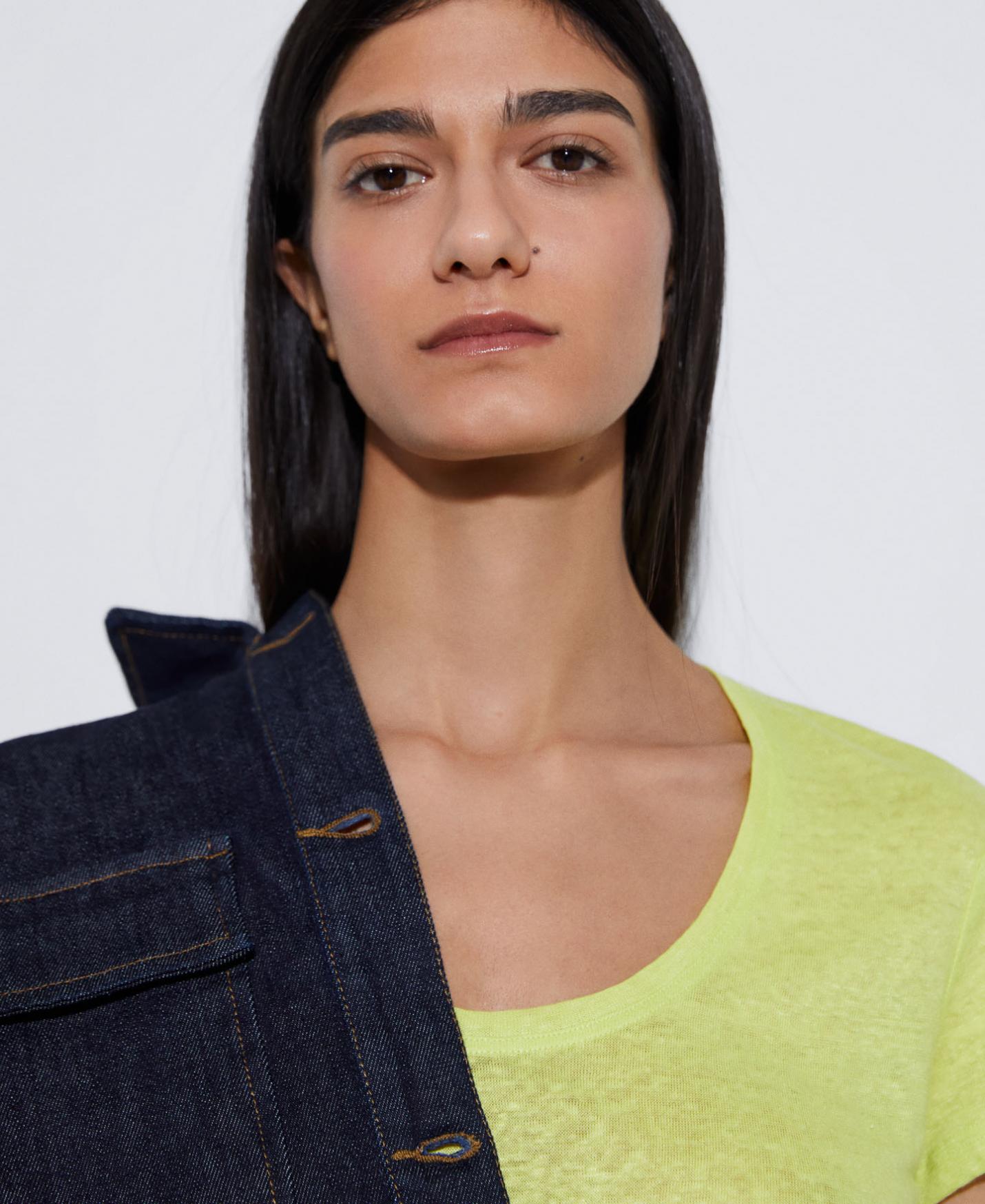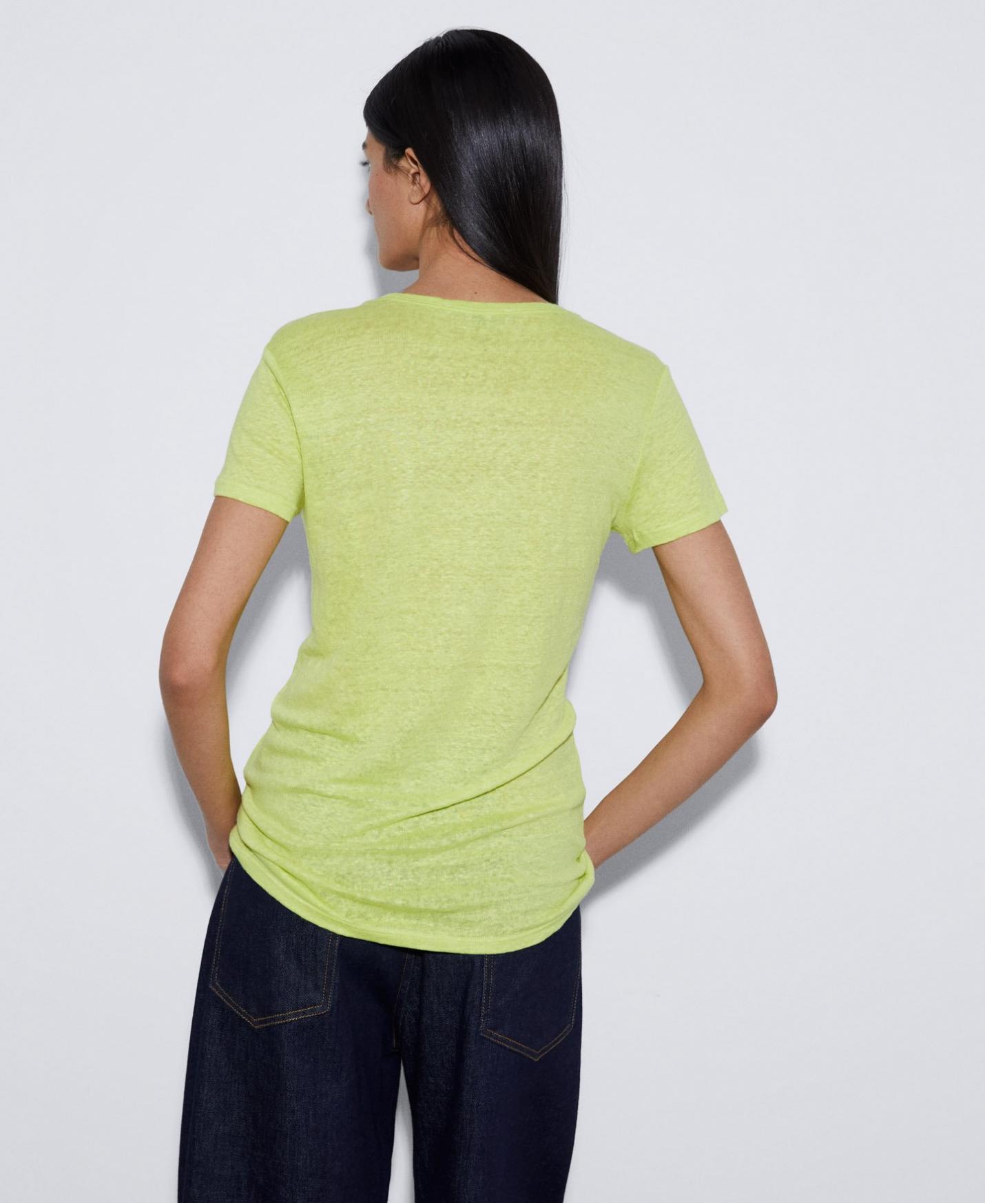 Camiseta de manga corta y cuello redondo en 100% lino.