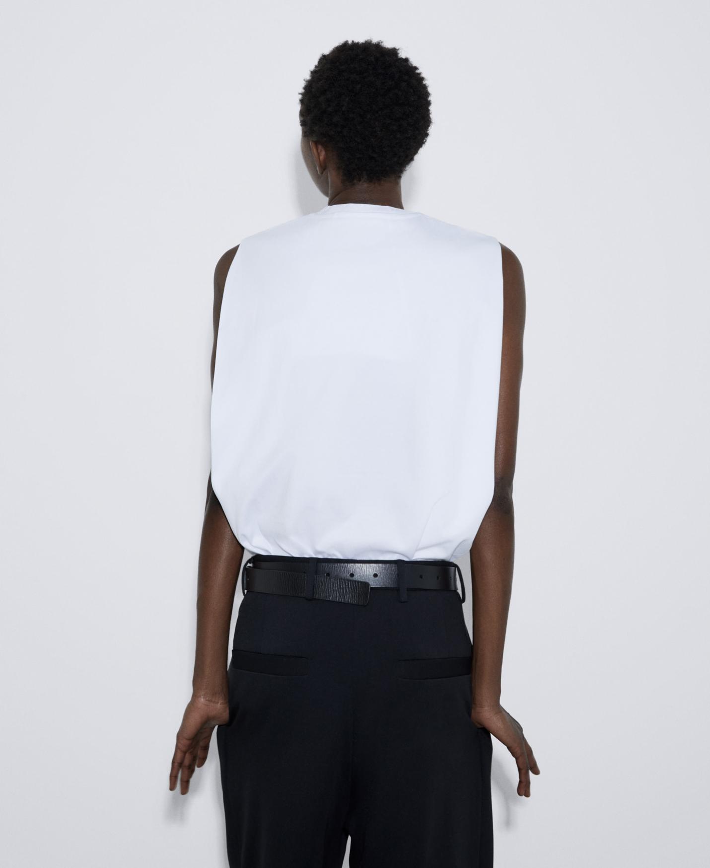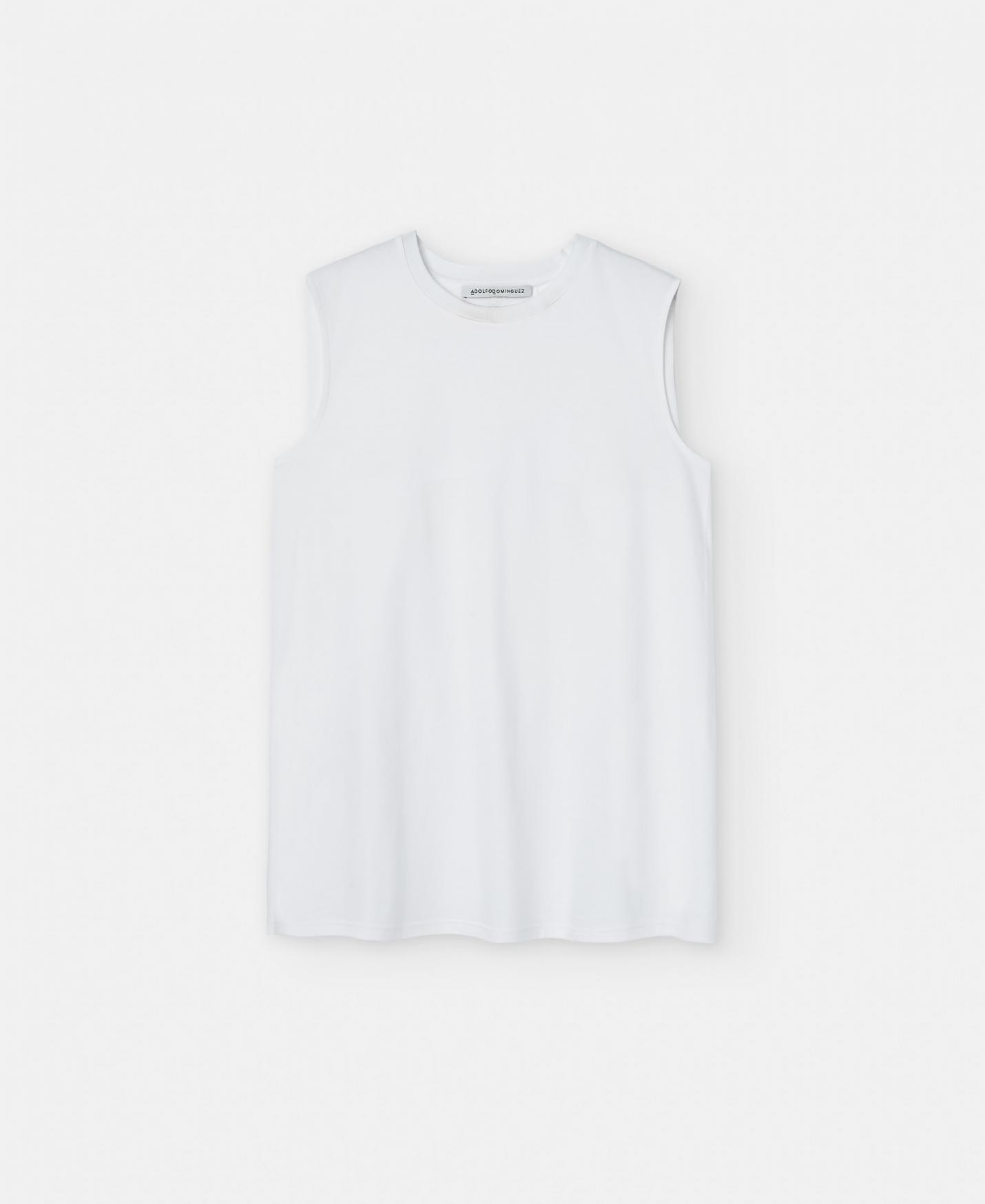 Camiseta en 100% algodón mercerizado. Manga sisa. Cuello redondo.