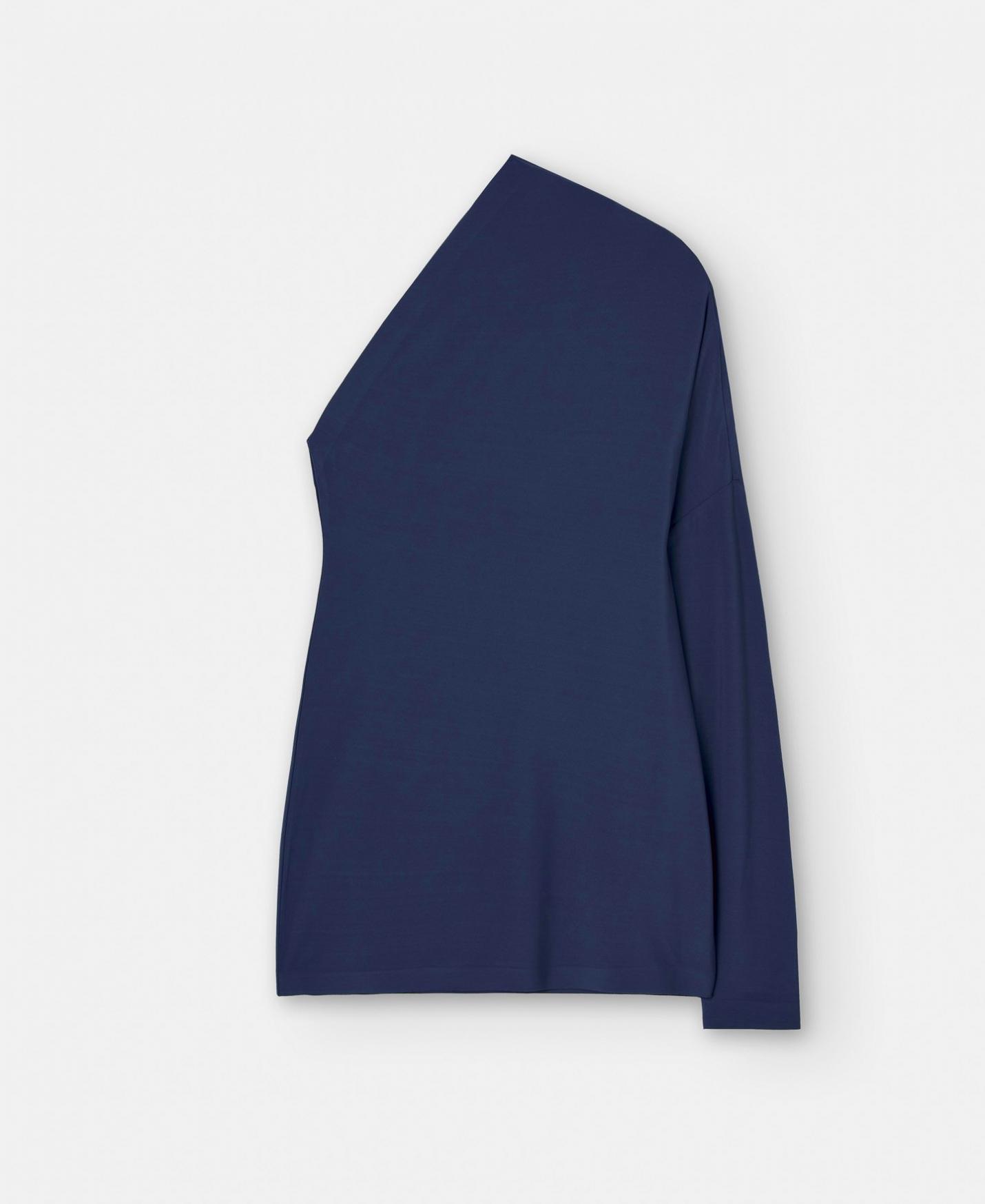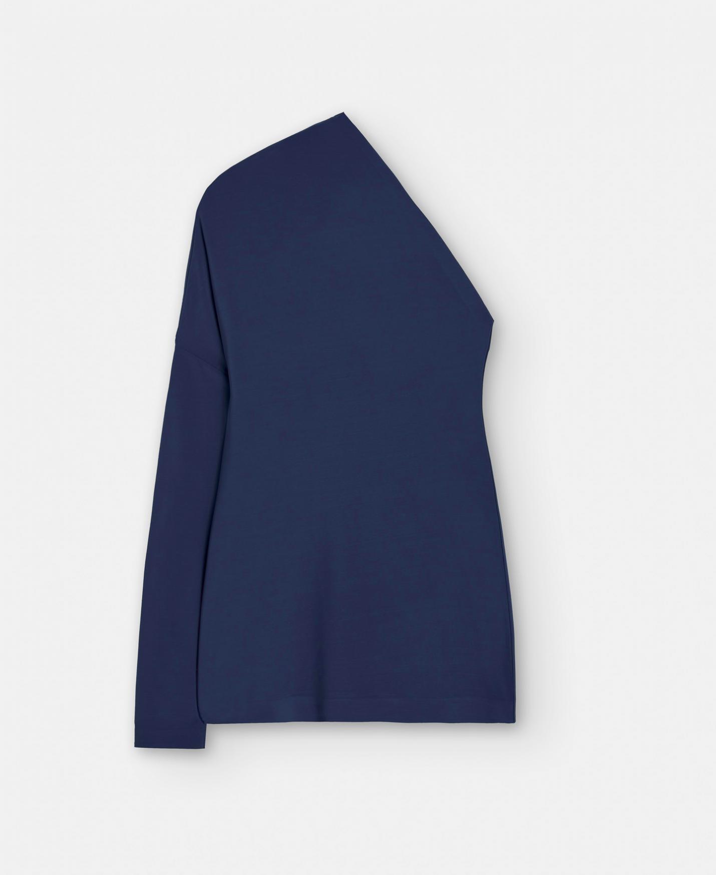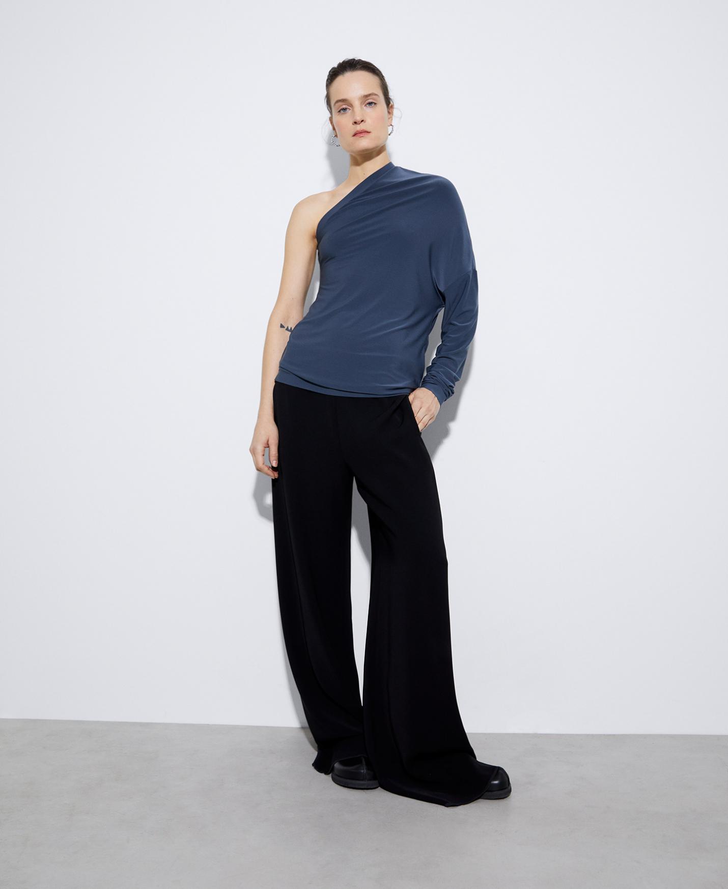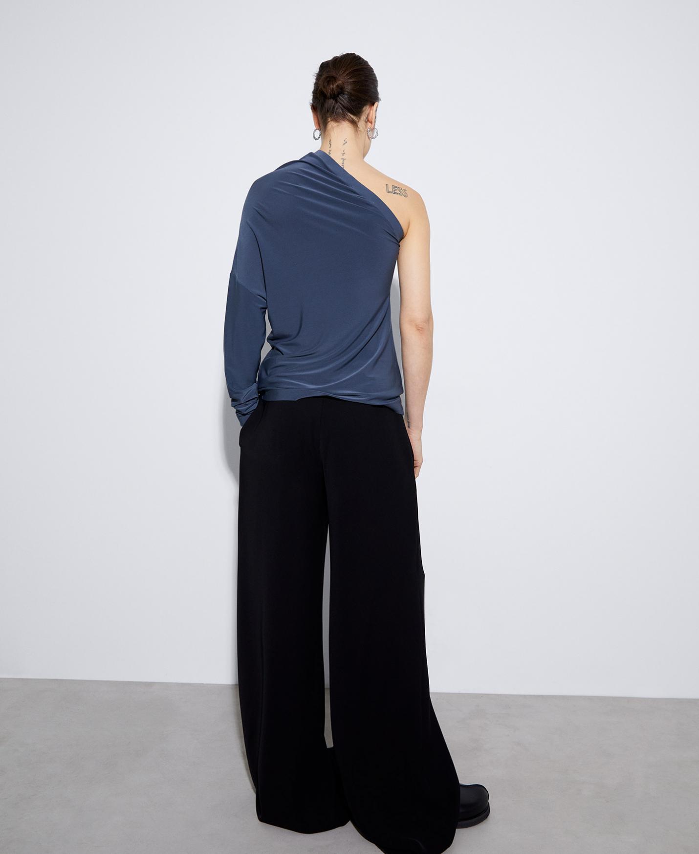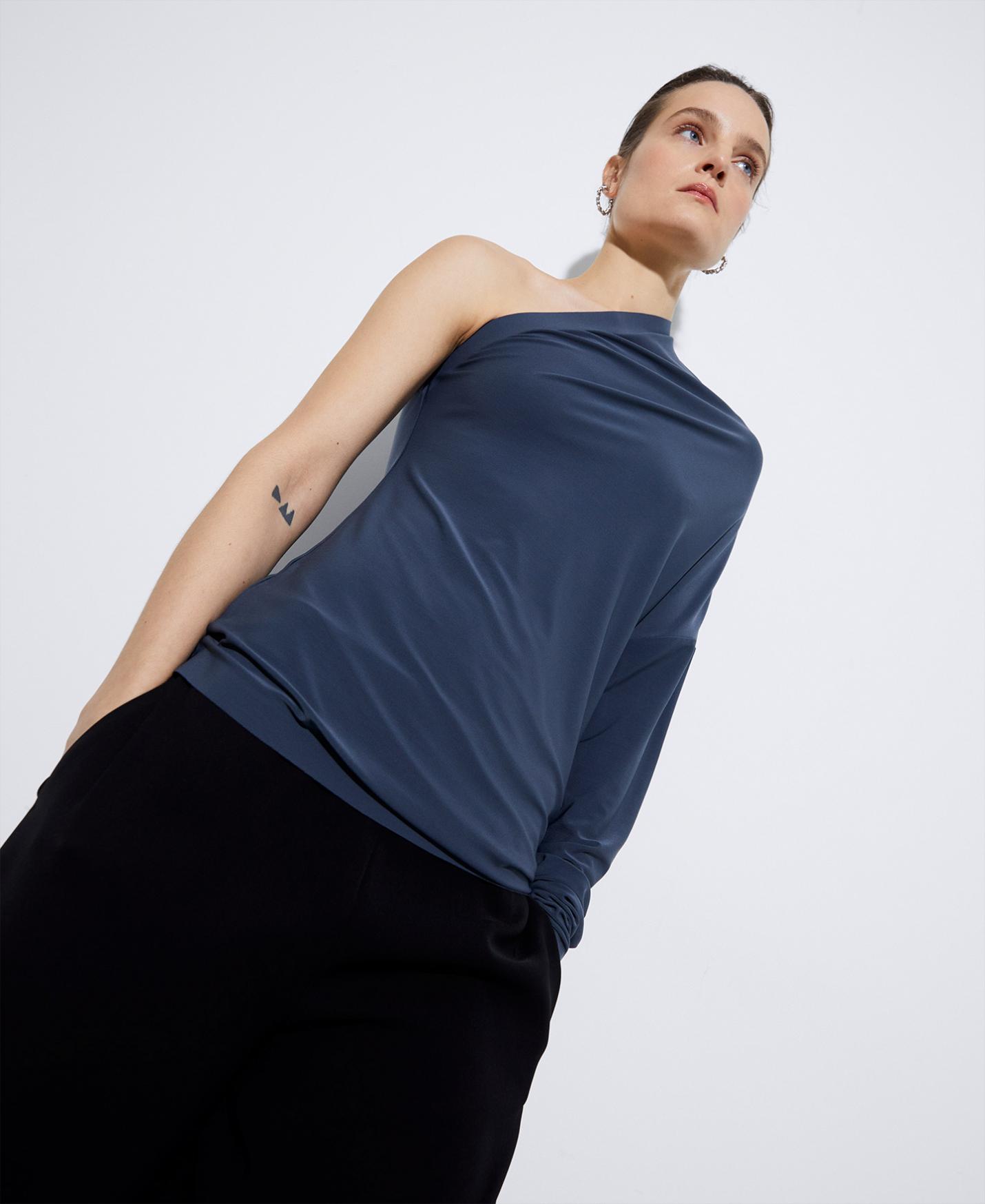 Camiseta escote asimétrico drapeado. Entallada, con una única manga larga.
