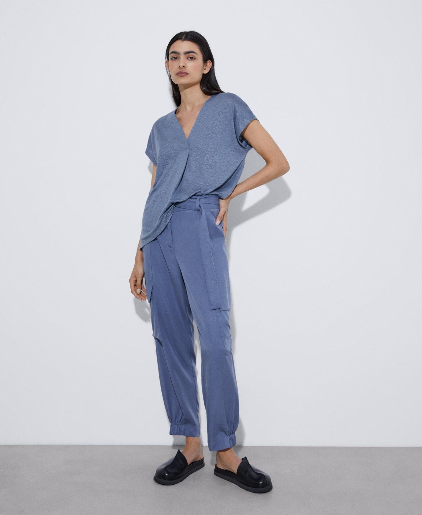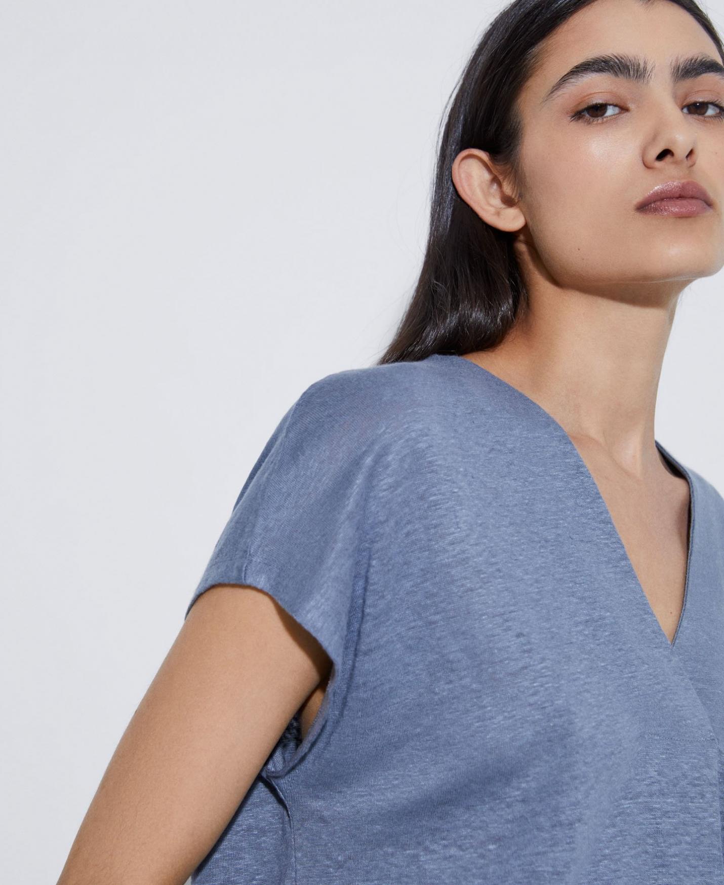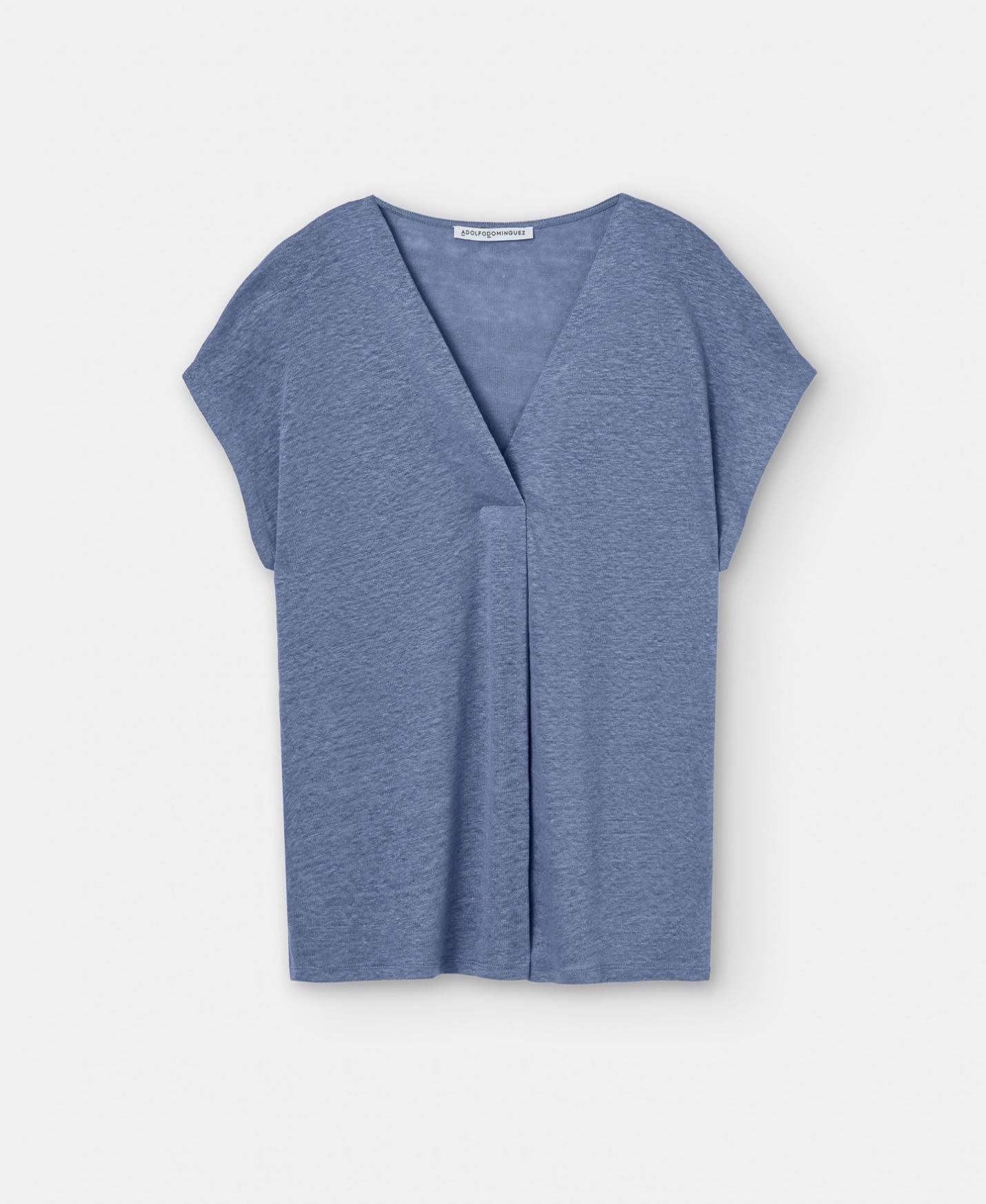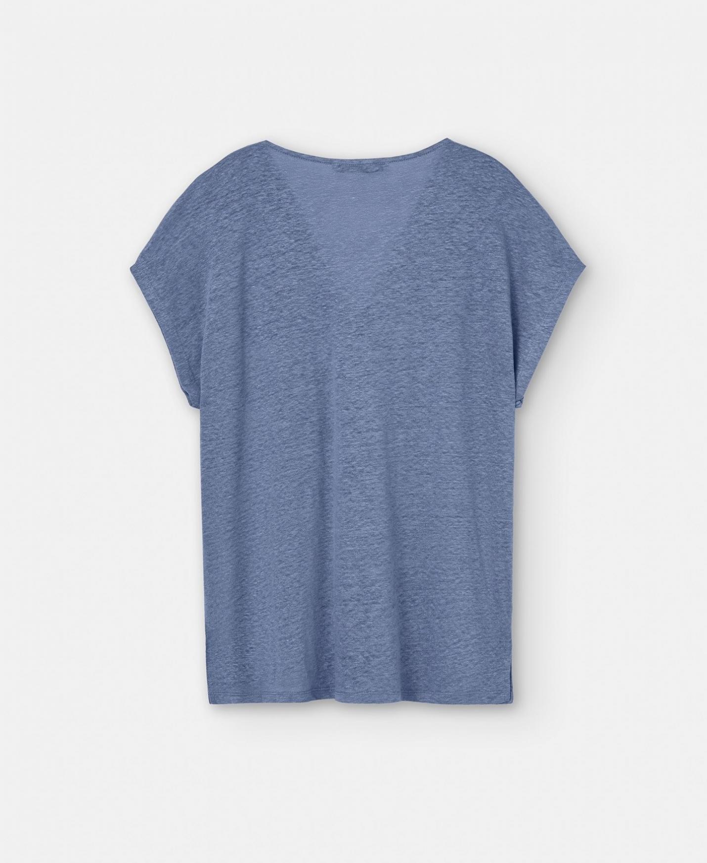 Camisetas Adolfo Dominguez | Camiseta escote pico en lino Azul/Gris Mujer