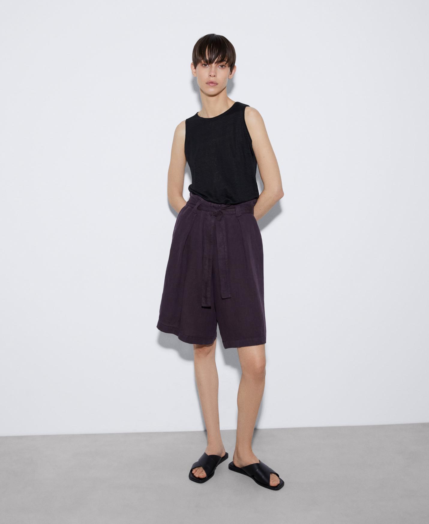 Camiseta tank en 100% lino. Manga sisa, cuello redondo.