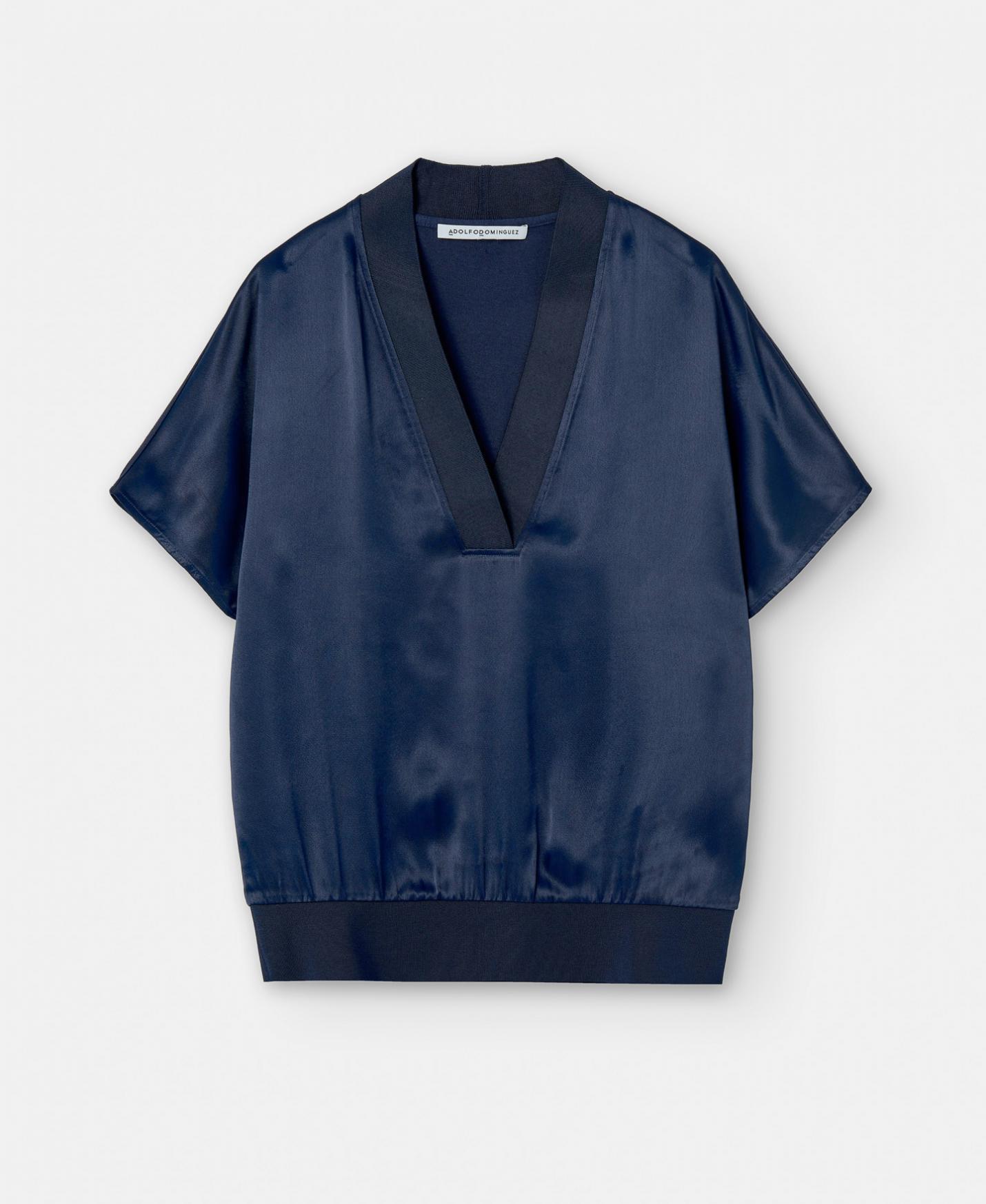Camisetas Adolfo Dominguez | Camiseta viscosa con elástico en cintura Azul Mujer