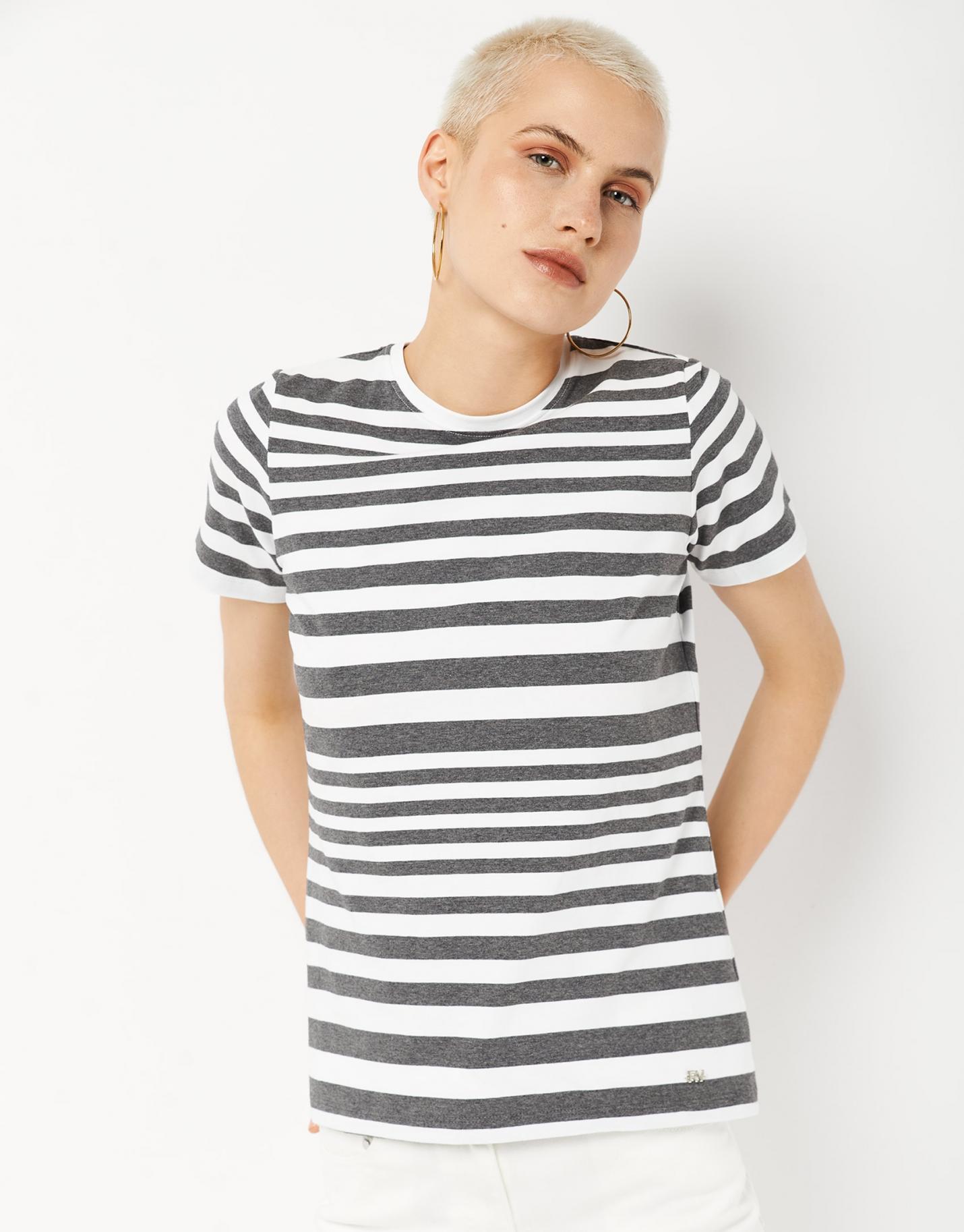 Camisetas Roberto Verino | Camiseta Manga Corta Rayas Grises Mujer