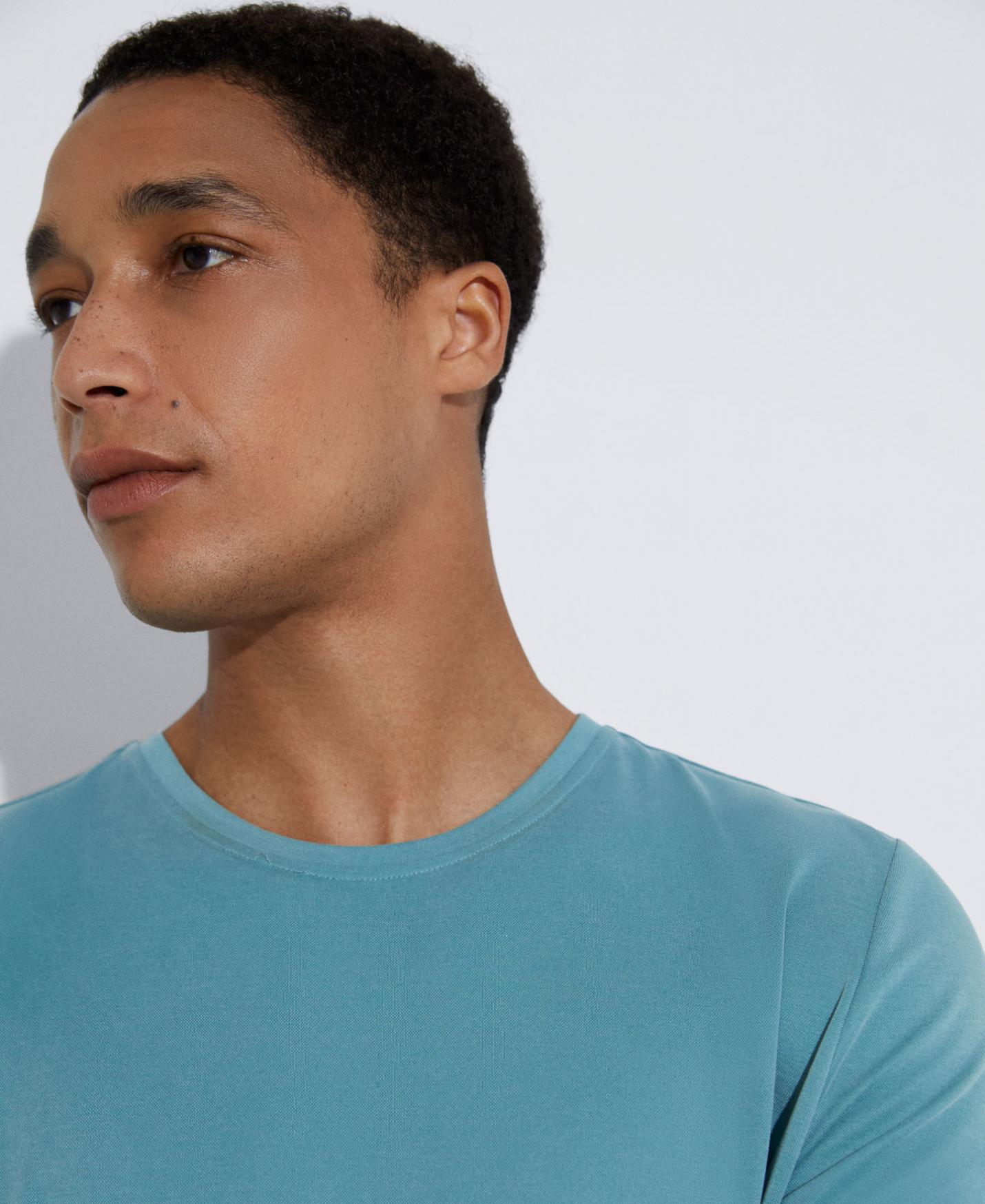 Camiseta básica en modal responsable de LENZING™. Cuello redondo. Manga corta. Corte regular.