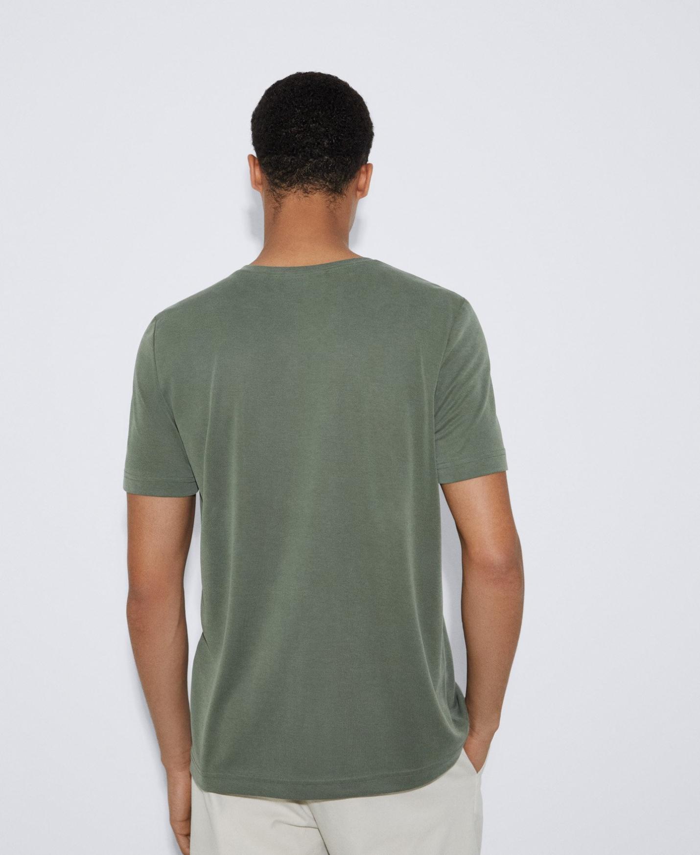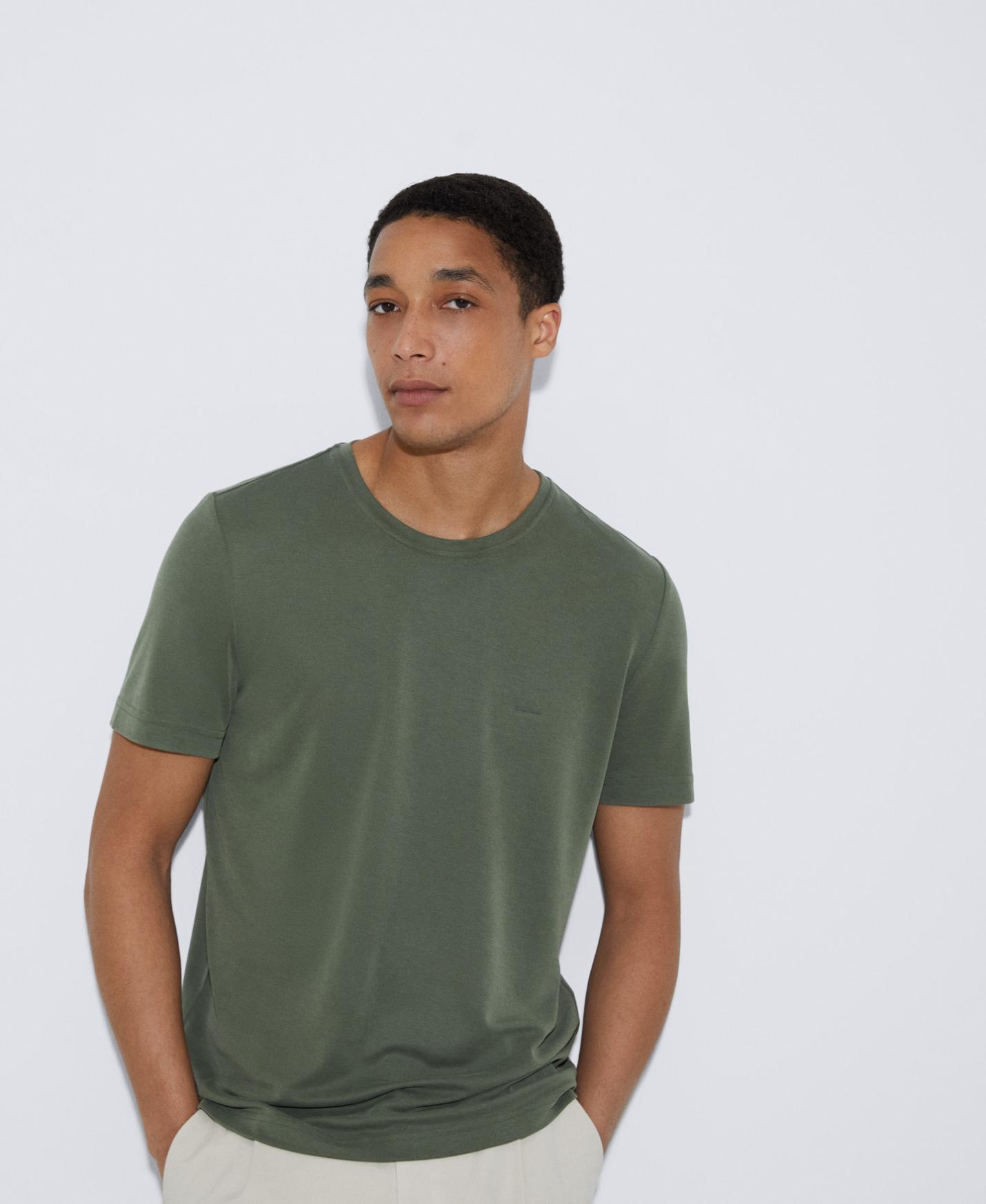 Camiseta básica en modal responsable de LENZING™. Cuello redondo. Manga corta. Corte regular.