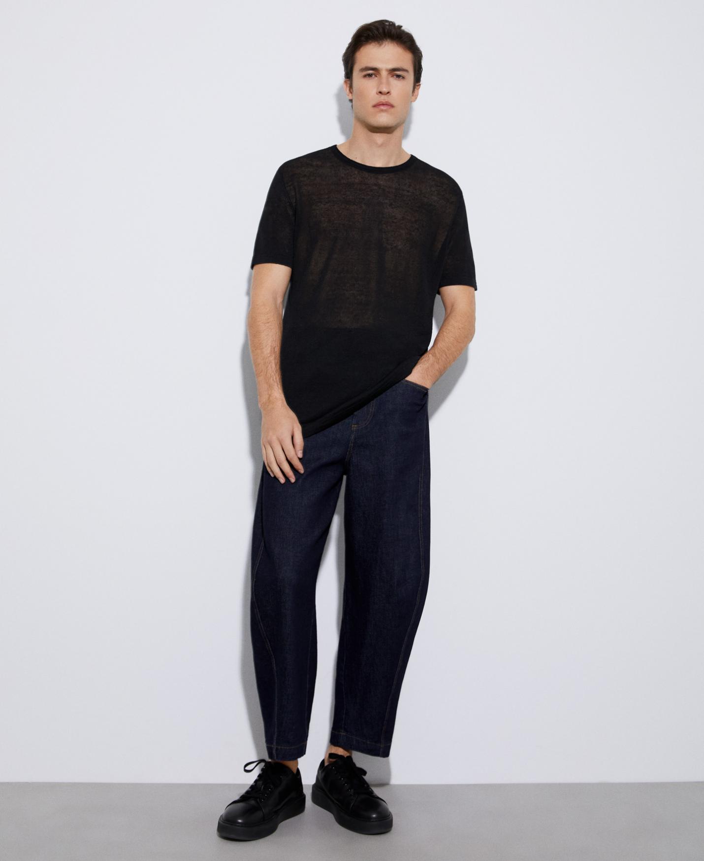 DescripciónRef.172071324321 Camiseta cuello caja confeccionada en punto de lino y nylon. Cuello en vivo con y corte rejaja…