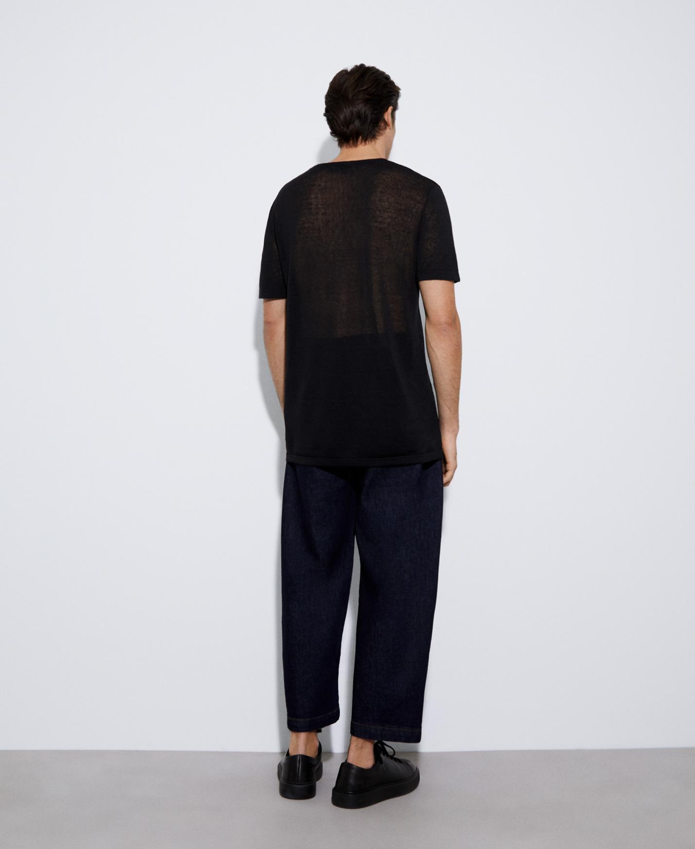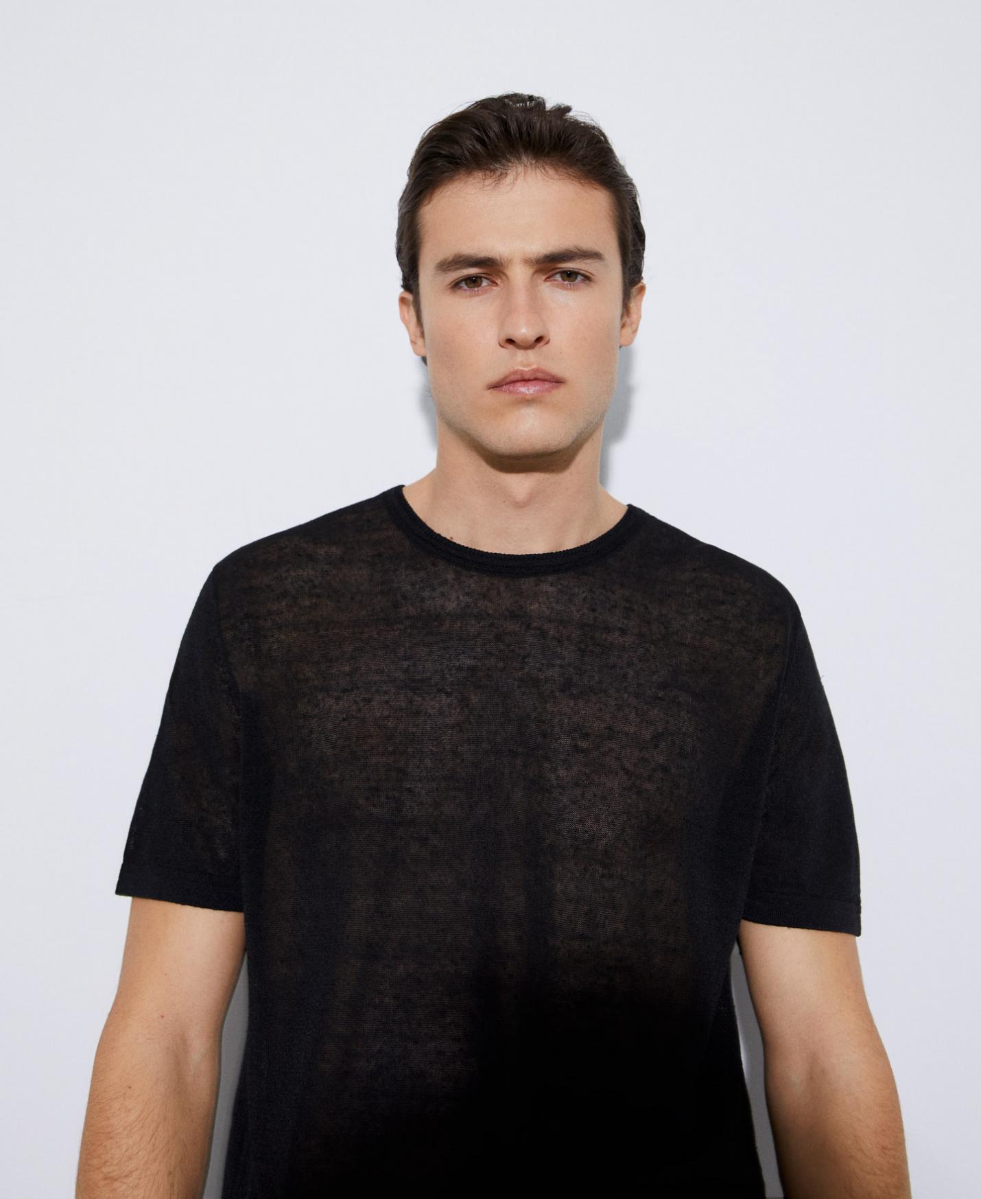 Camisetas y polos Adolfo Dominguez | Camiseta cuello caja en lino y nylon Negro Hombre