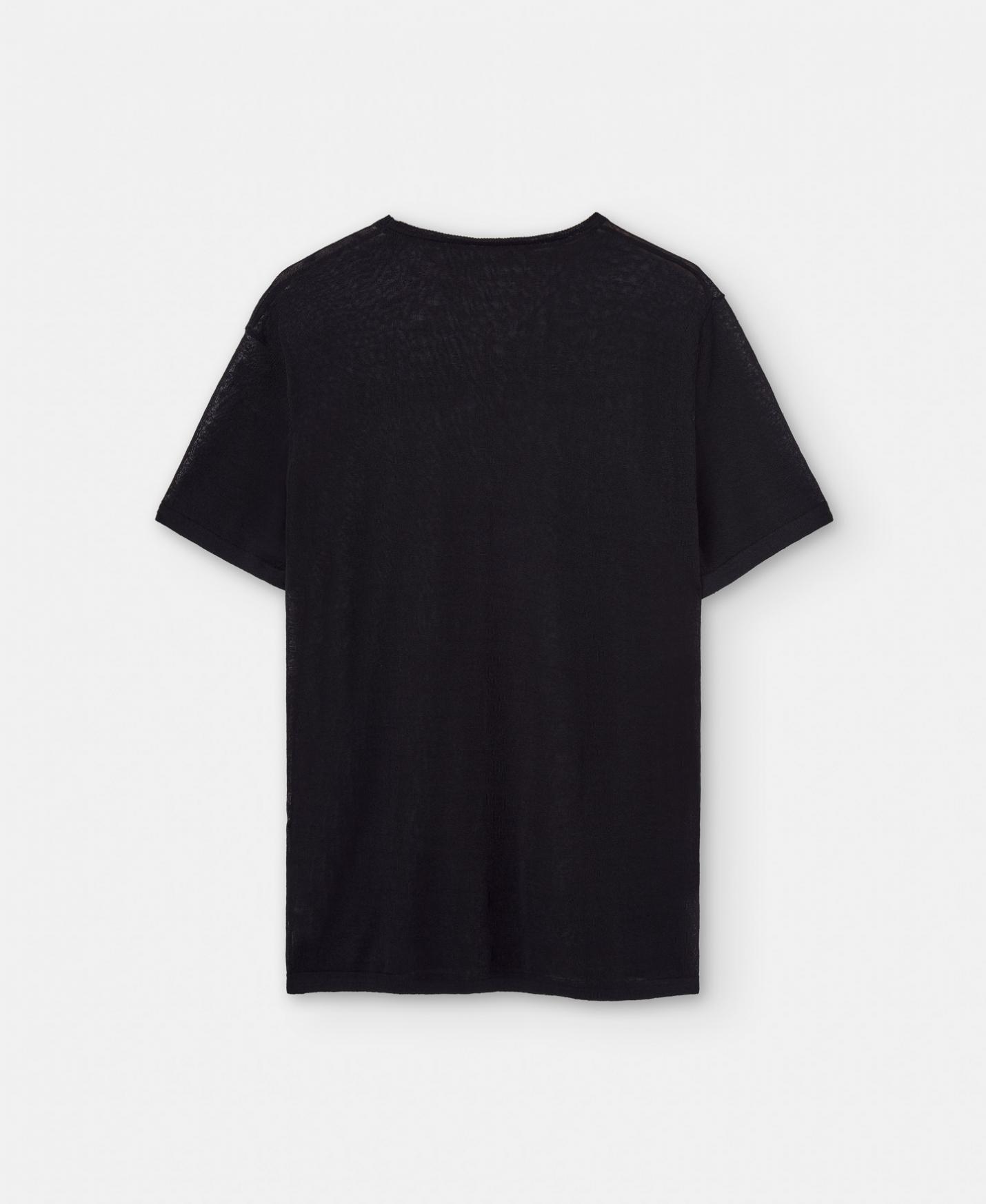 Camiseta cuello caja confeccionada en punto de lino y nylon. Cuello en vivo con y corte rejajado.