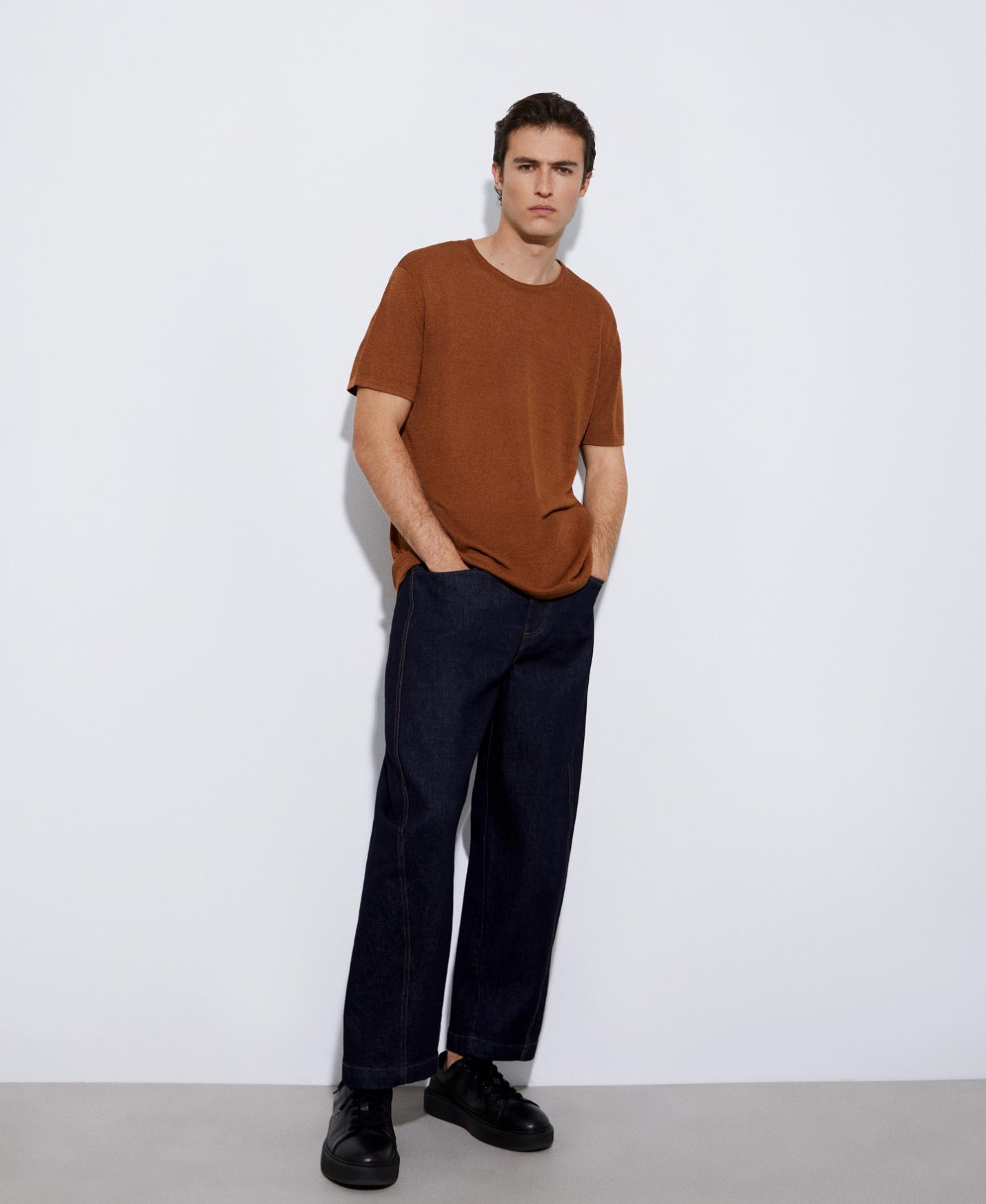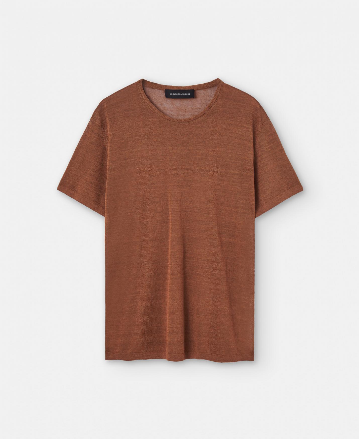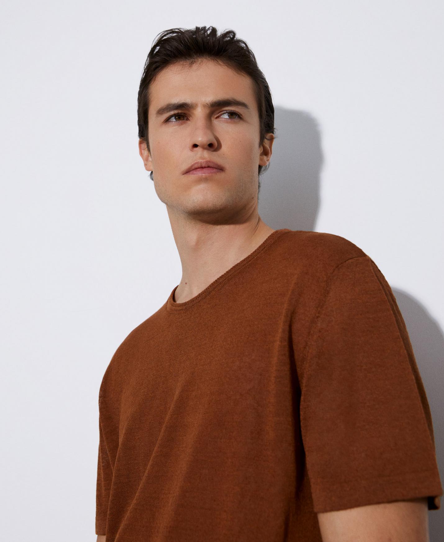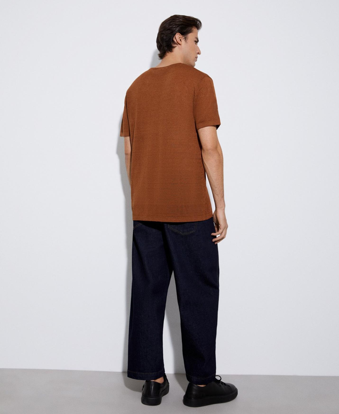 Camisetas y polos Adolfo Dominguez | Camiseta cuello caja en lino y nylon Tabaco Hombre