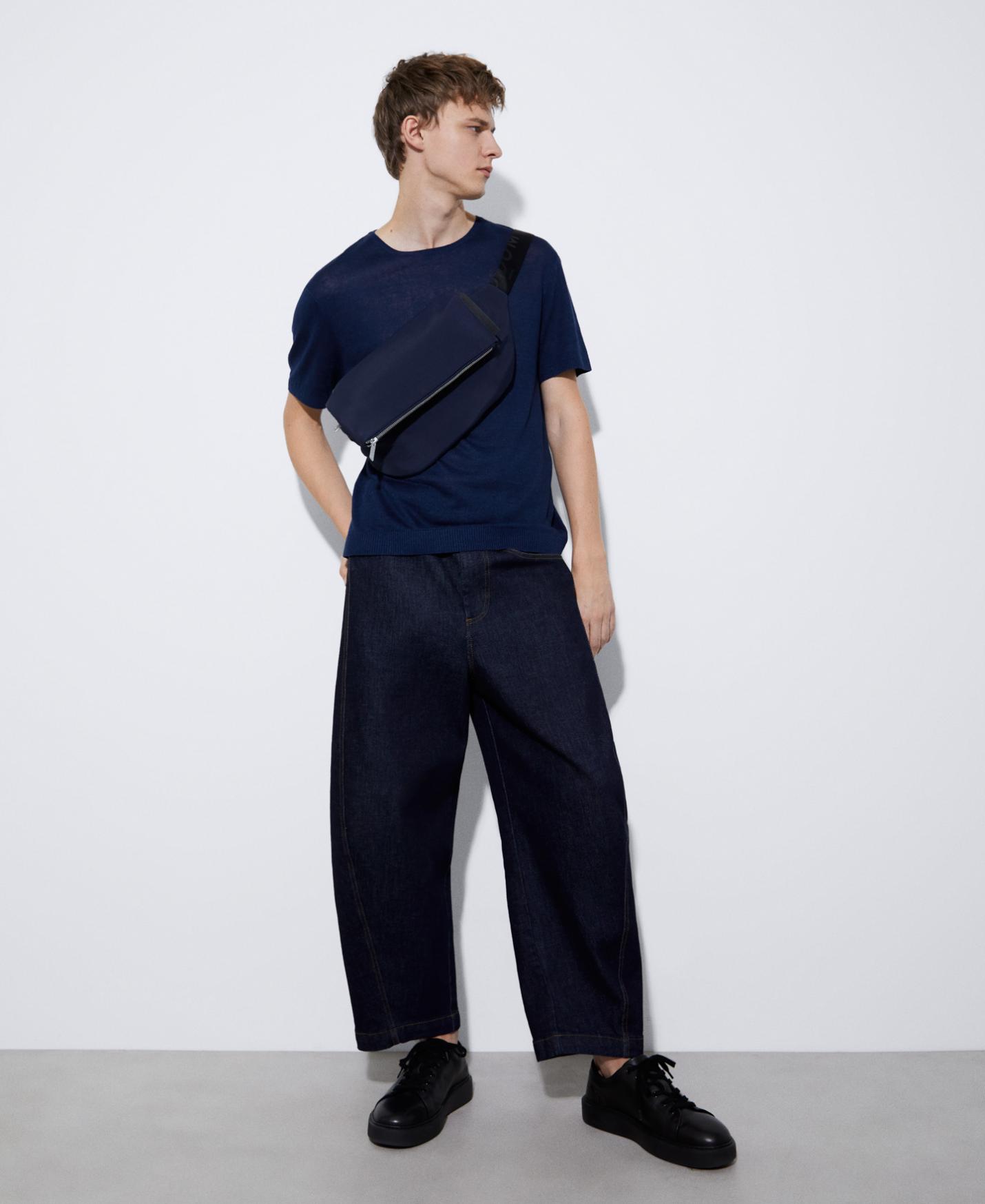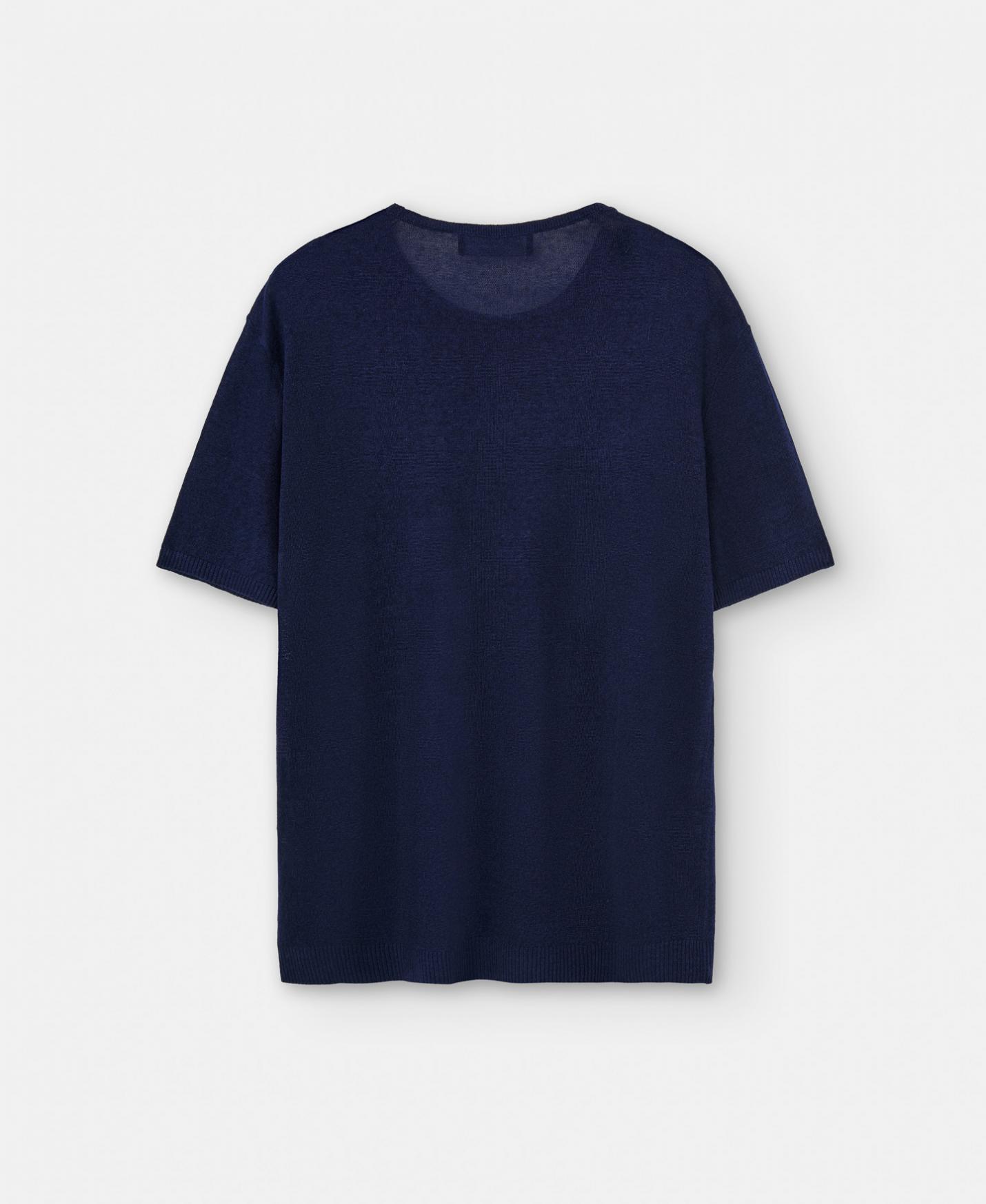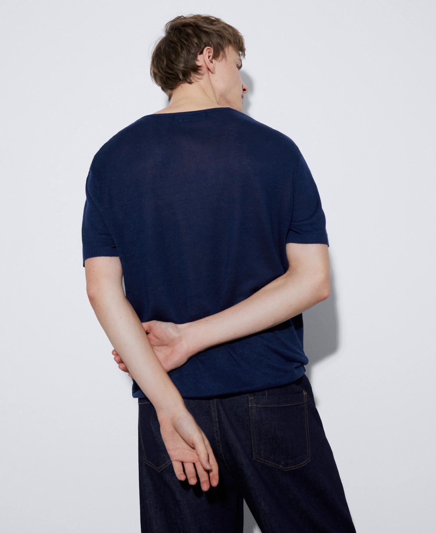 Camiseta cuello caja en punto de lino. Tiene manga corta, bajo recto y corte holgado.
