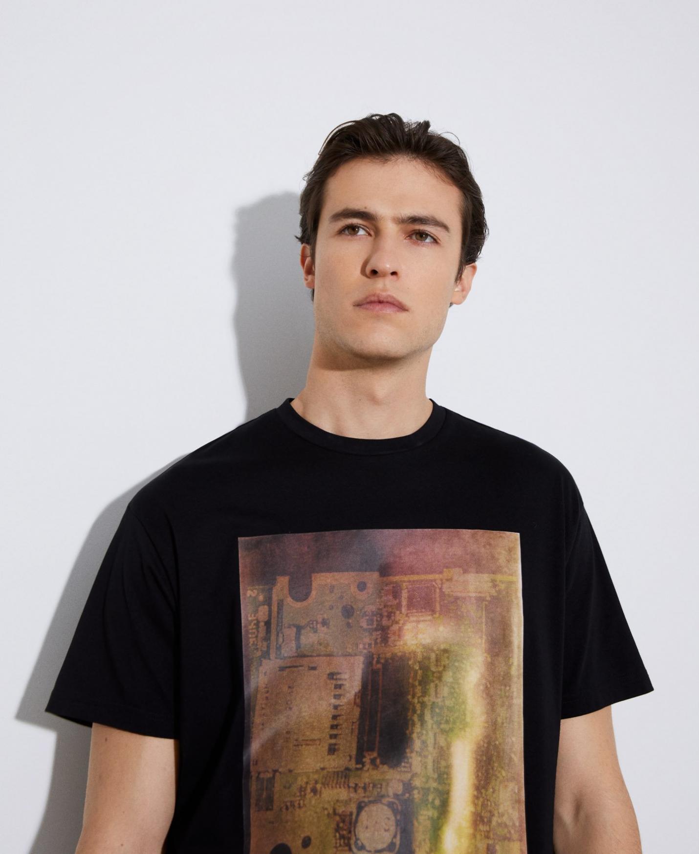 Camisetas y polos Adolfo Dominguez | Camiseta oversize estampado en pecho Negro Hombre