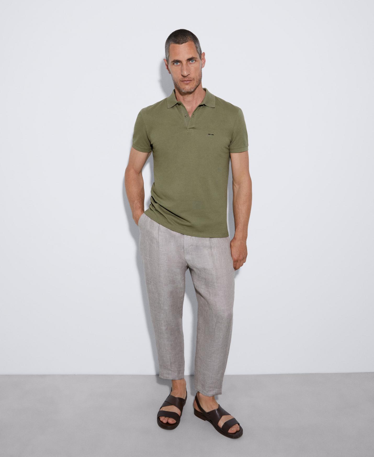 Camisetas y polos Adolfo Dominguez | Polo dos botones en piqué de algodón Verdeoliva Hombre