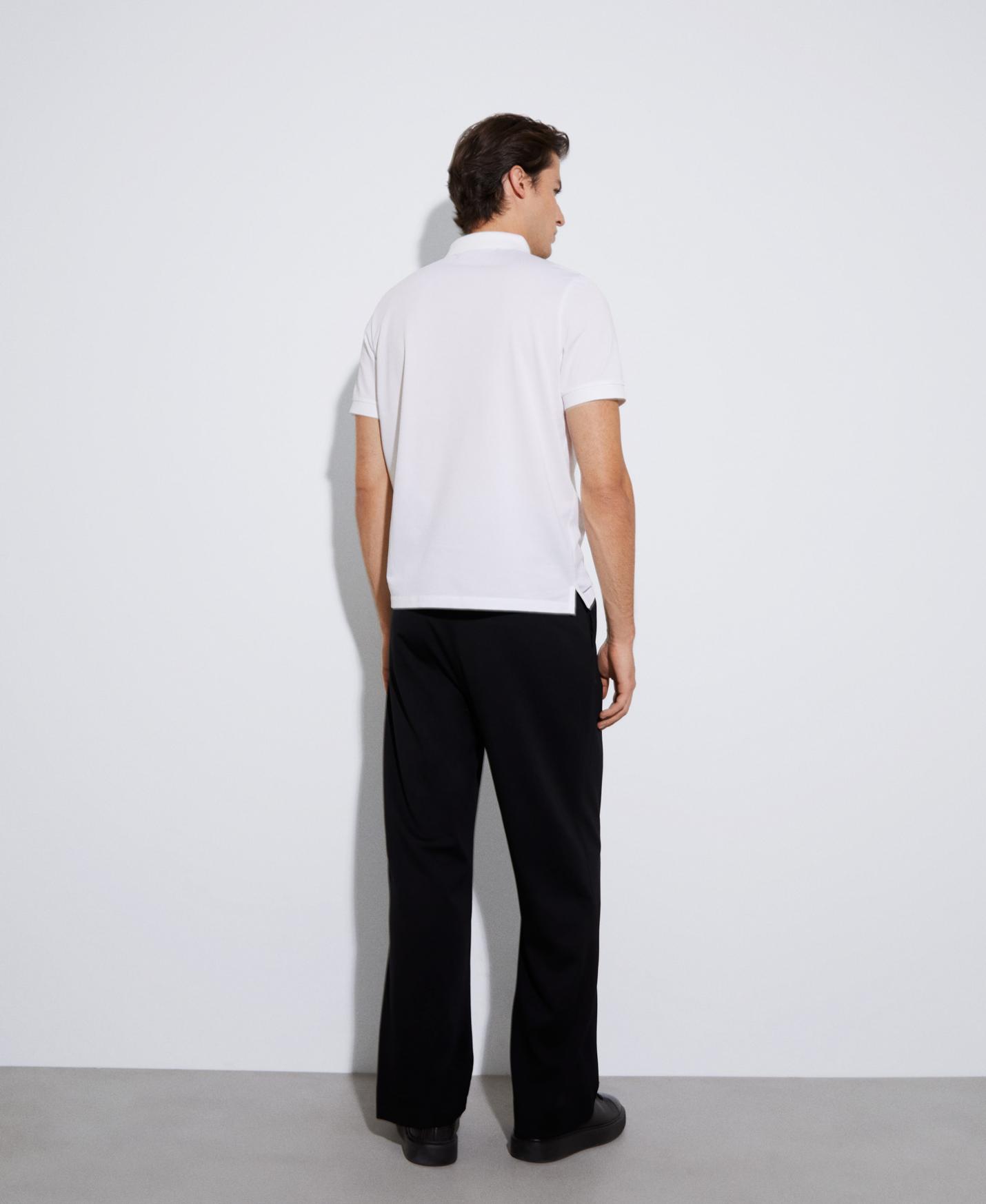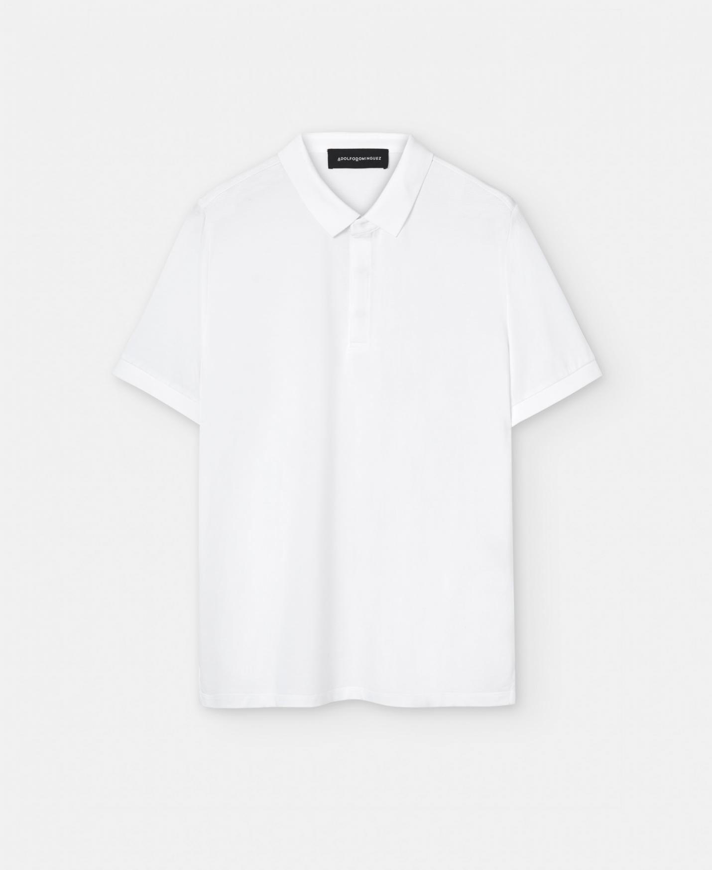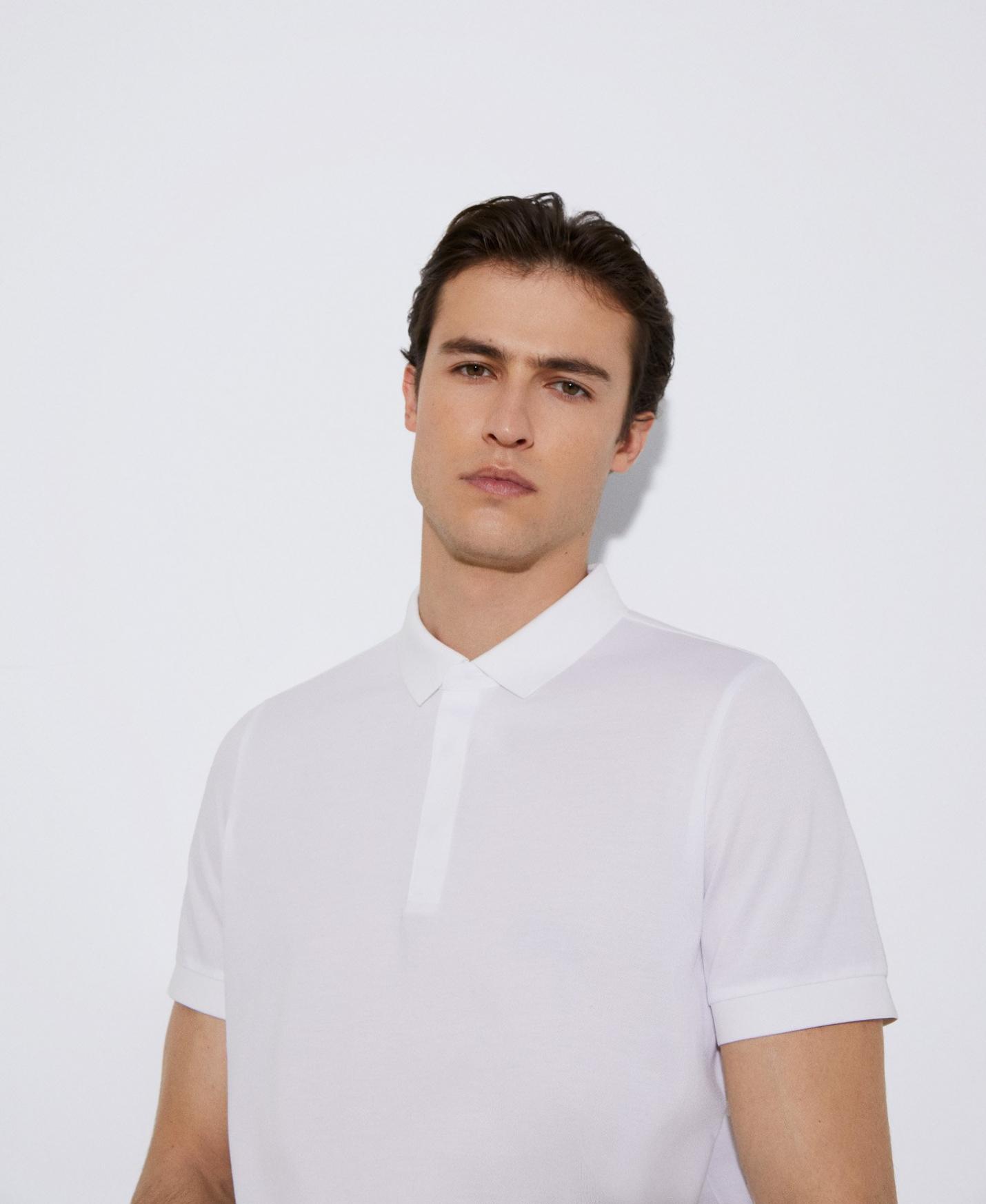 Polo estructura en algodón mercerizado. Tiene cuello polo abotonado y solapa con botonera oculta. Rib en mangas y bajo.